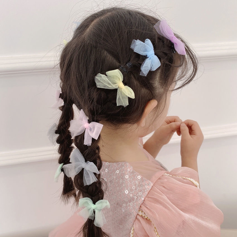 儿童韩国网纱发饰简约发夹蝴蝶结女童小夹子可爱公主碎发发卡头饰