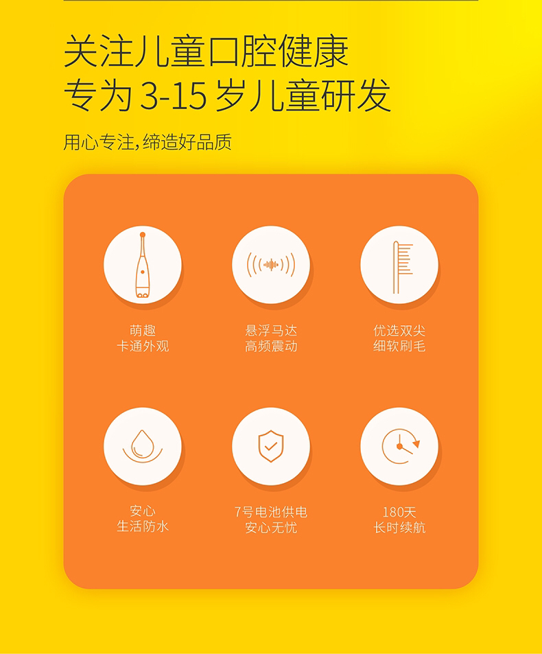 材质:ABS机身 双尖细软刷头 内置磁悬浮马达