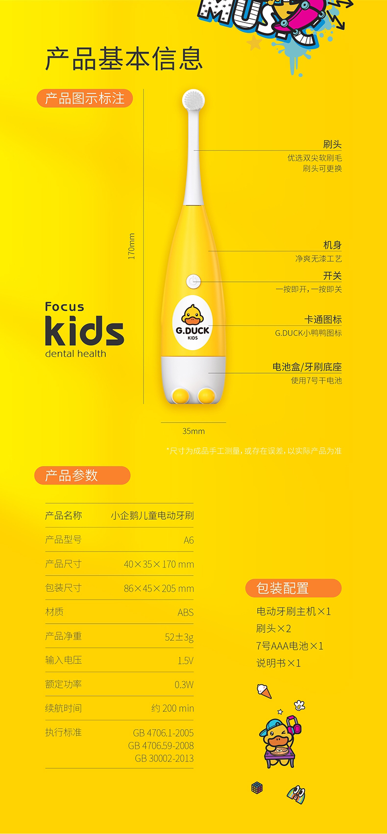 品名:G DUCK小黄鸭小企鹅电动牙刷A6