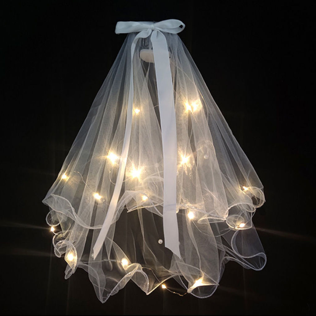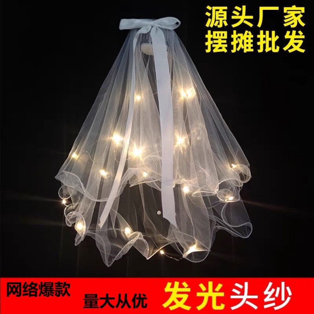 公主新娘拍照小道具白沙头饰箍女网红新款超仙带闪灯地摊摆摊批发