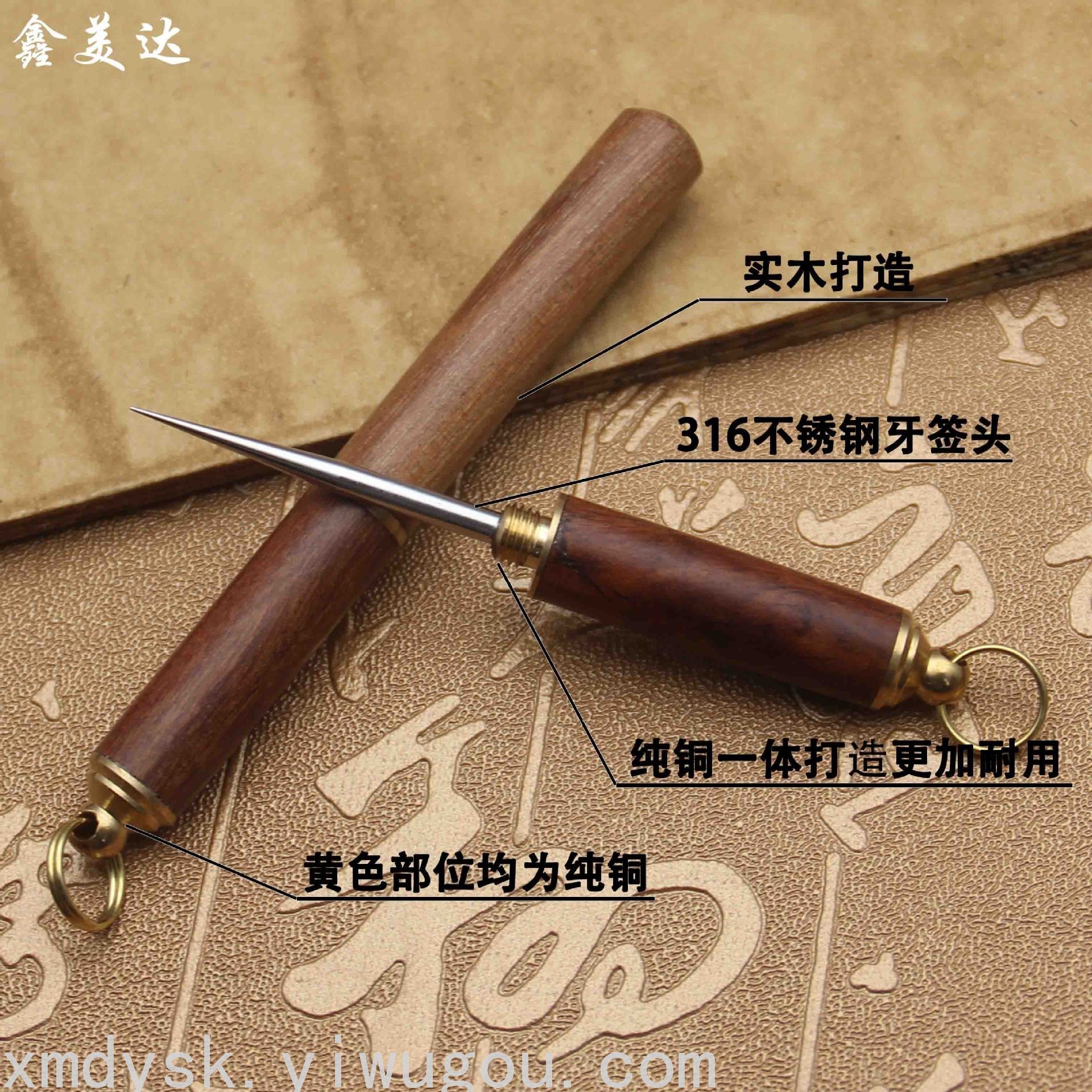 不锈钢牙签收纳 缅甸黄花梨实木牙针便携家用剔牙器成人洁牙器
