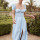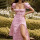2022春季新款亚马逊欧美女装方领泡泡袖系带不规则性感碎花连衣裙