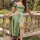 2022春季新款亚马逊欧美女装方领泡泡袖系带不规则性感碎花连衣裙 投诉
