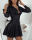 2020欧美秋冬季亚马逊 速卖通圆点印花百褶黑色长袖深V衬衫裙女 投诉