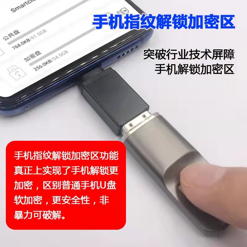 厂家直销指纹加密U盘安卓手机电脑两用加密识别优盘64g高速USB3.0