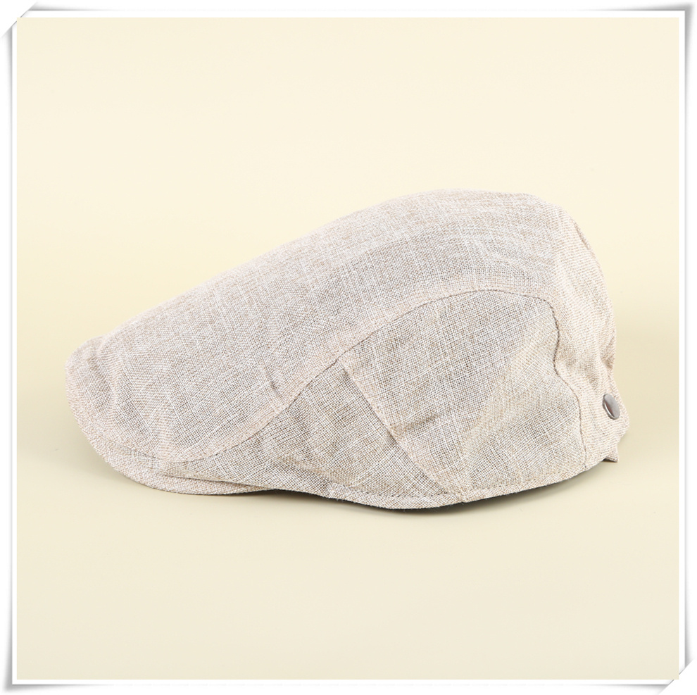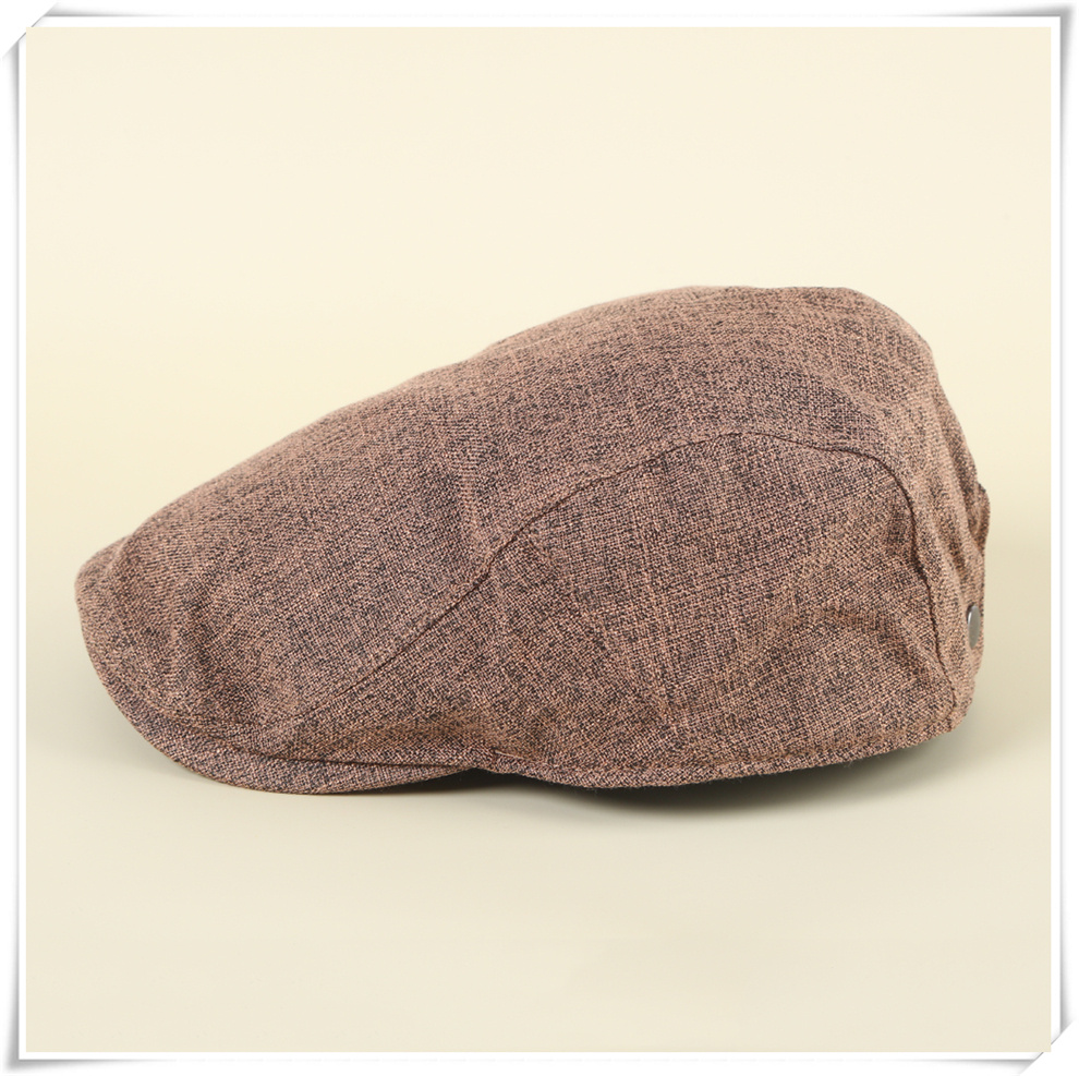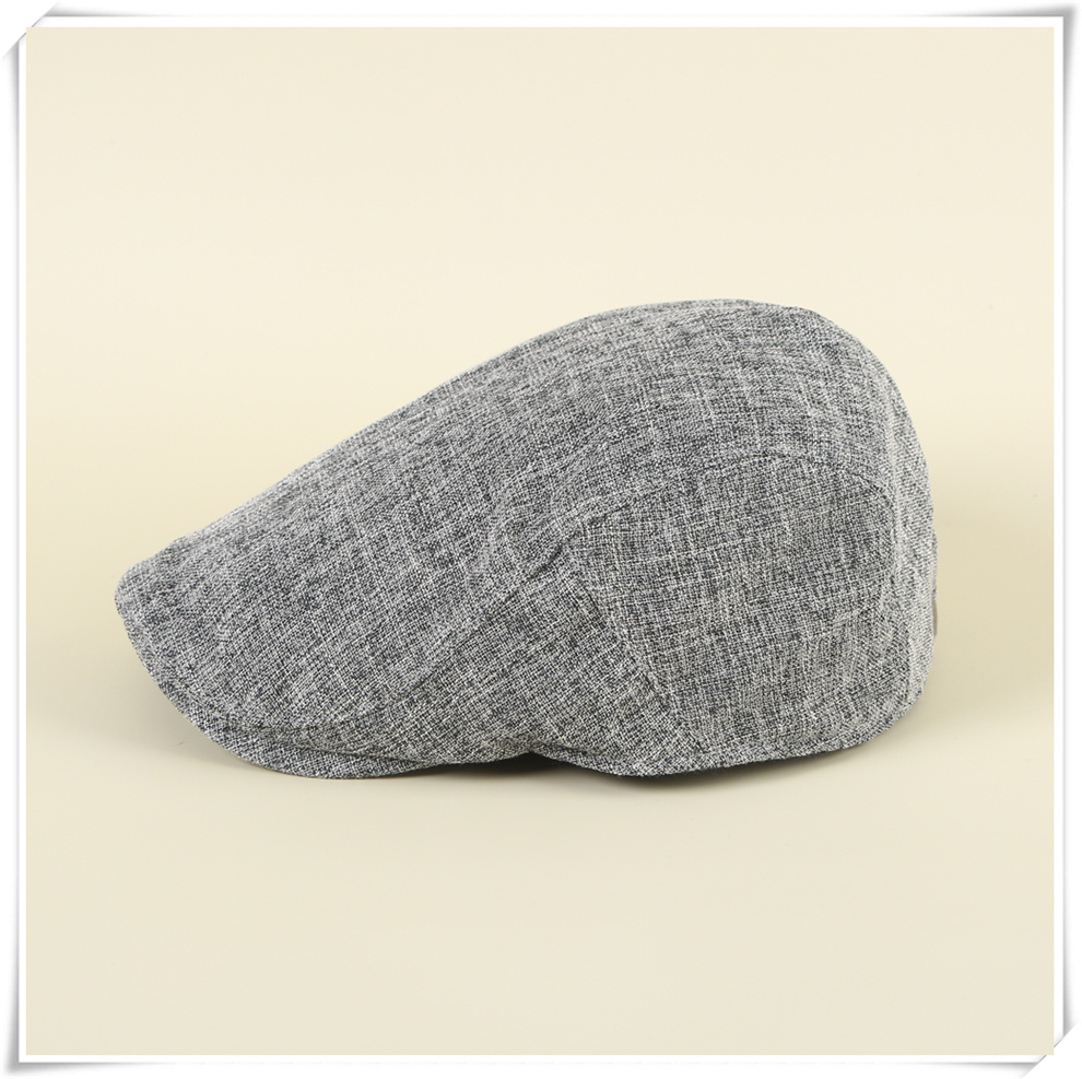 产品名称:棉麻贝雷帽男士复古鸭舌帽中老年纯色简约外贸帽子薄款夏季前进帽