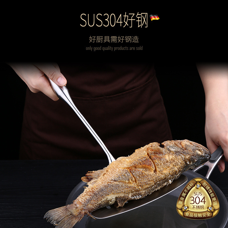 鱼铲牛排铲304不锈钢厨具长柄沥油炸鱼厨具平底煎加厚加宽翻鱼