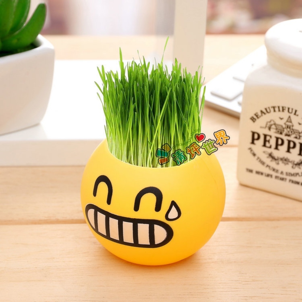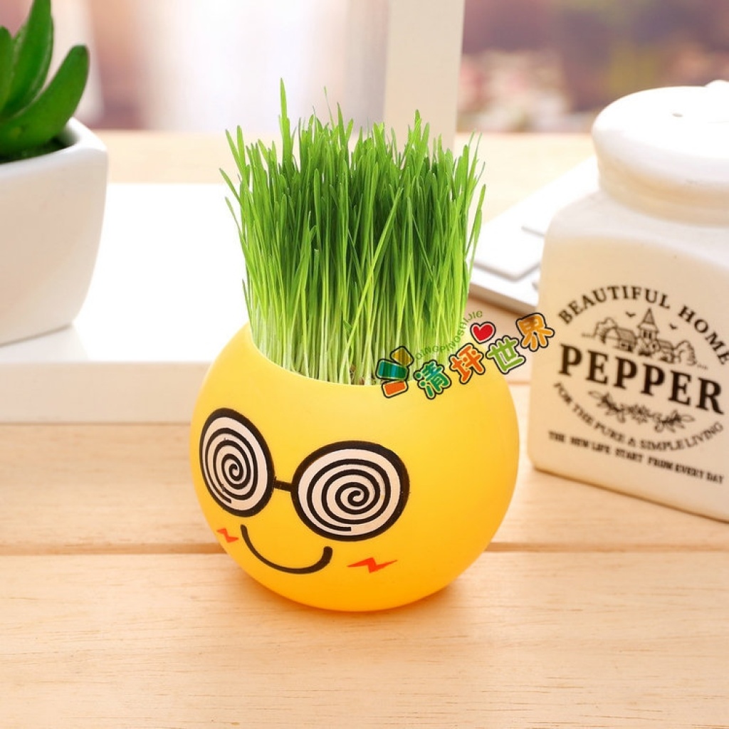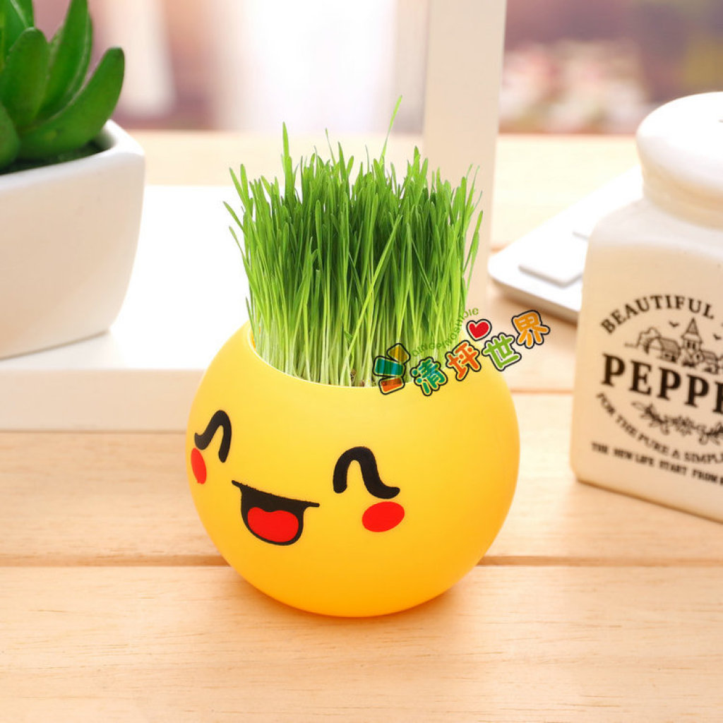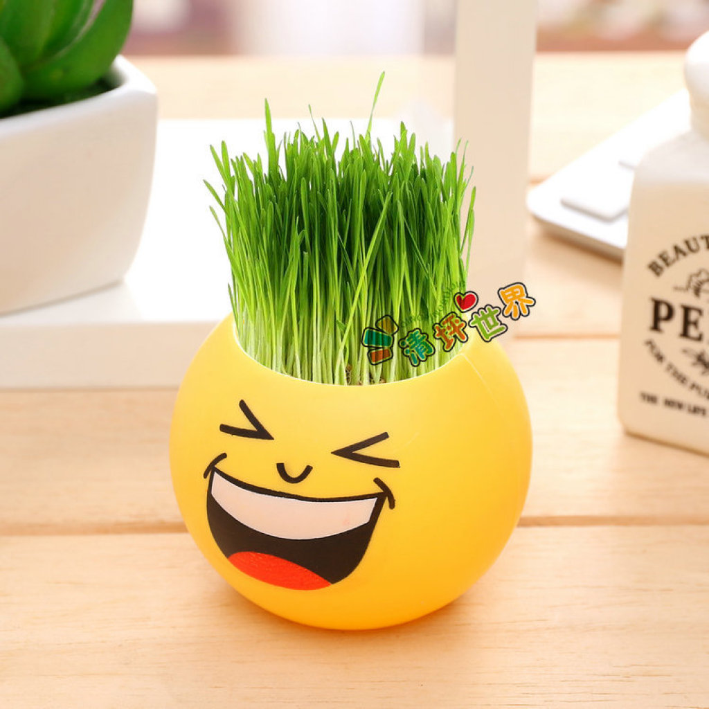 (塑料款炫酷表情)一件代发DIY青草种植盆栽魔草室内种植 长草娃娃