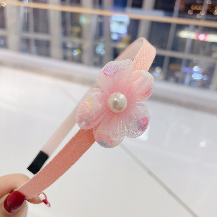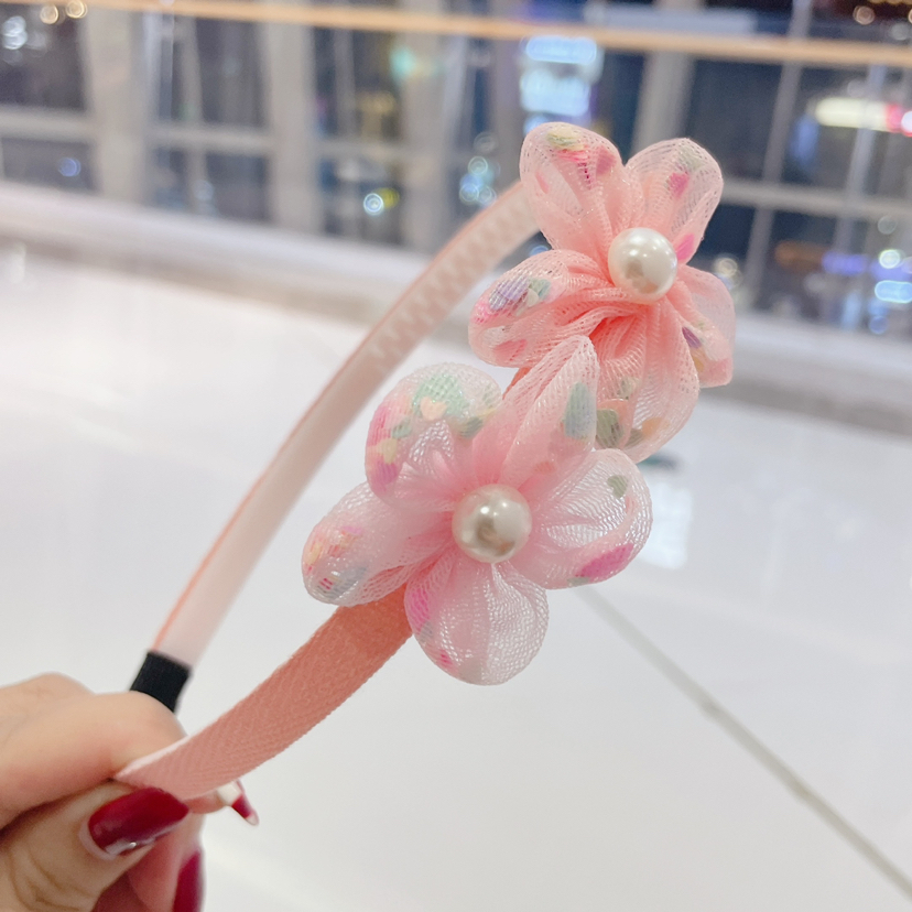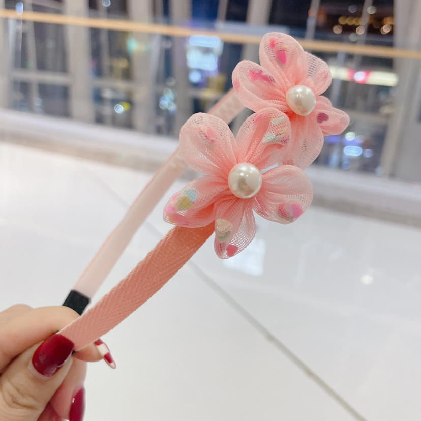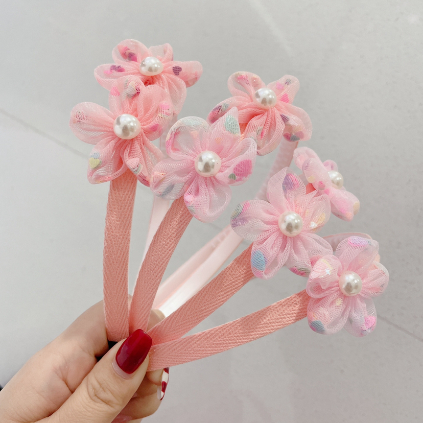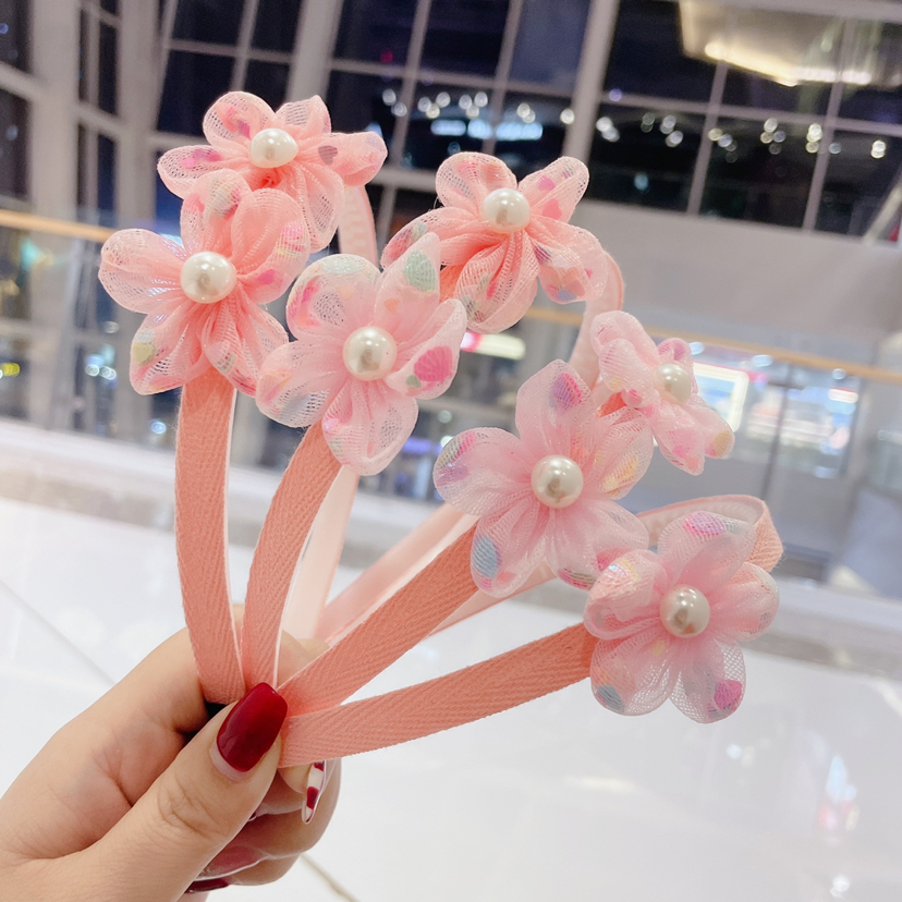 儿童网纱花朵发箍珍珠五瓣花超仙儿童头箍义乌厂家直销