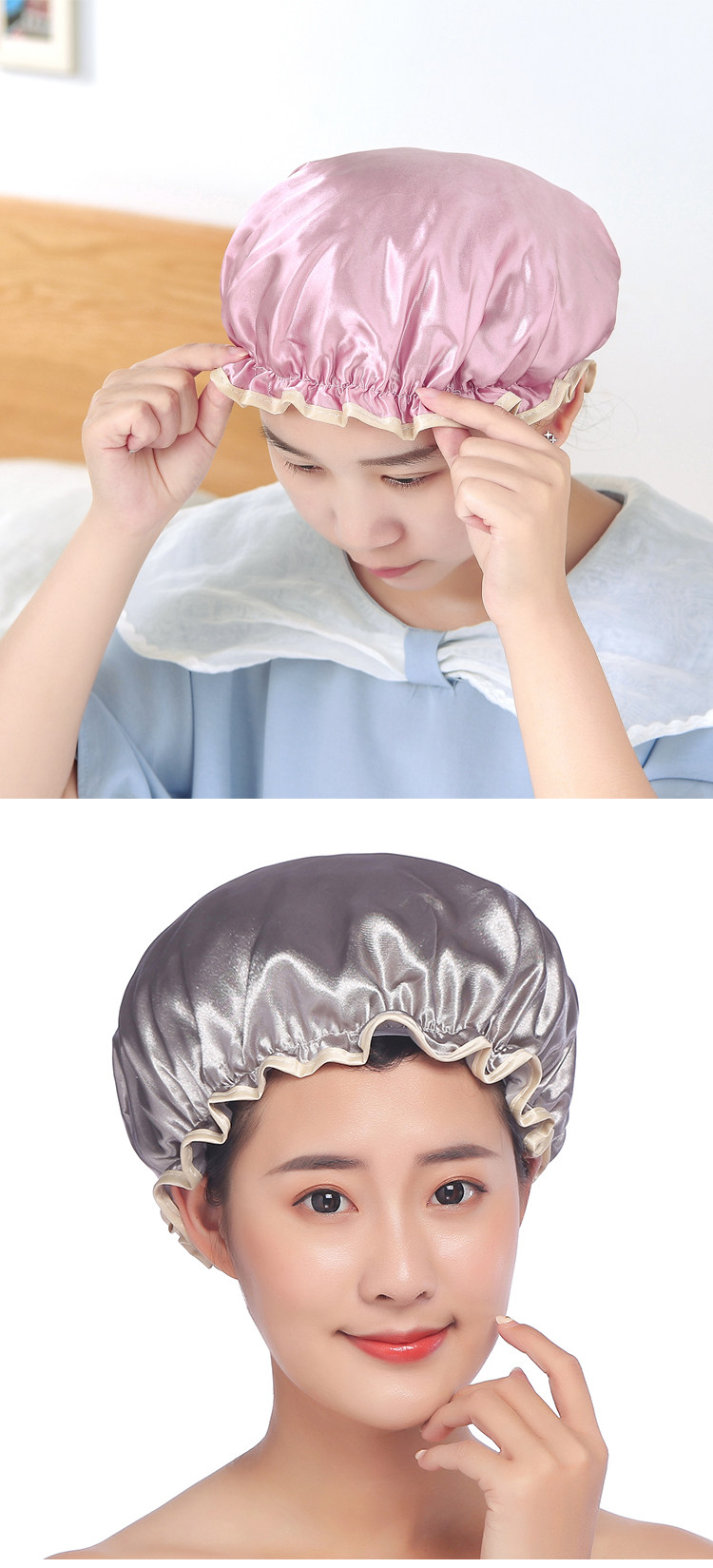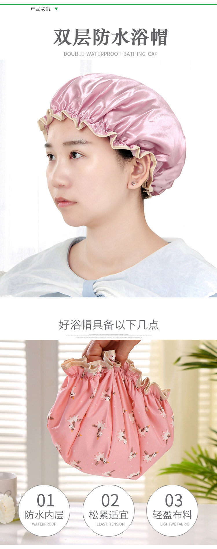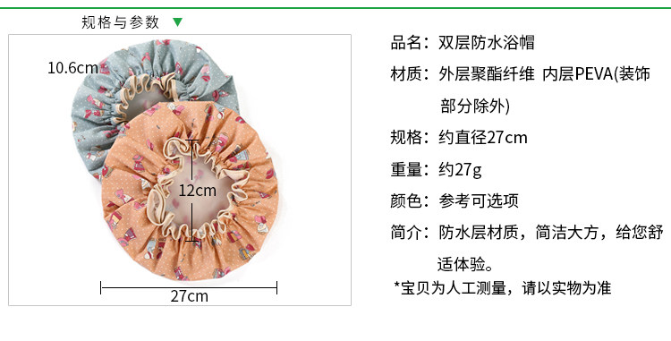 双层浴帽女防水洗澡头套家用成人沐浴帽发套厨房防油烟帽洗澡帽 投诉