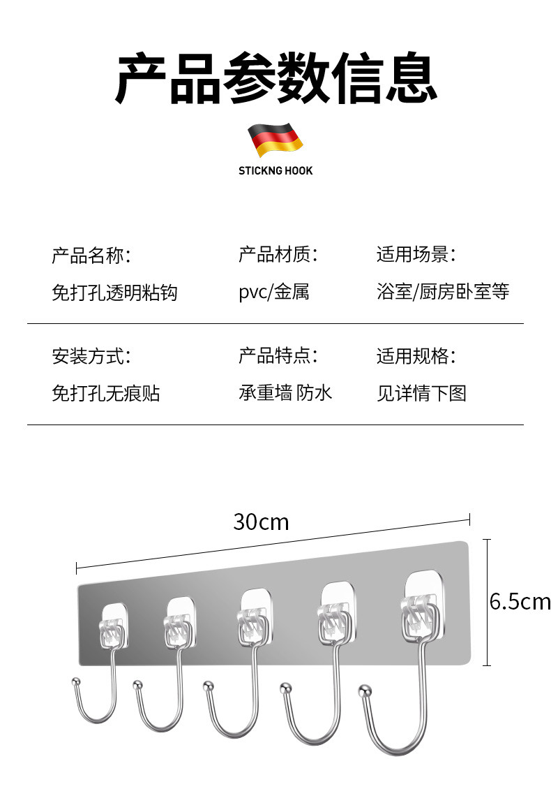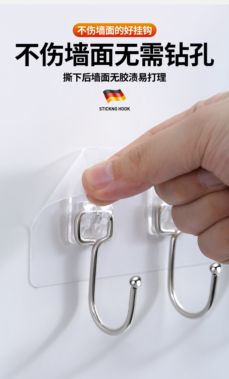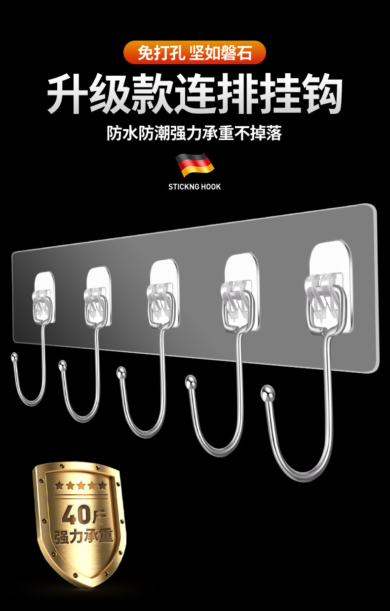 挂钩强力粘胶厨房墙壁门后无痕吸盘免打孔粘钩承重浴室连排壁挂贴 投诉