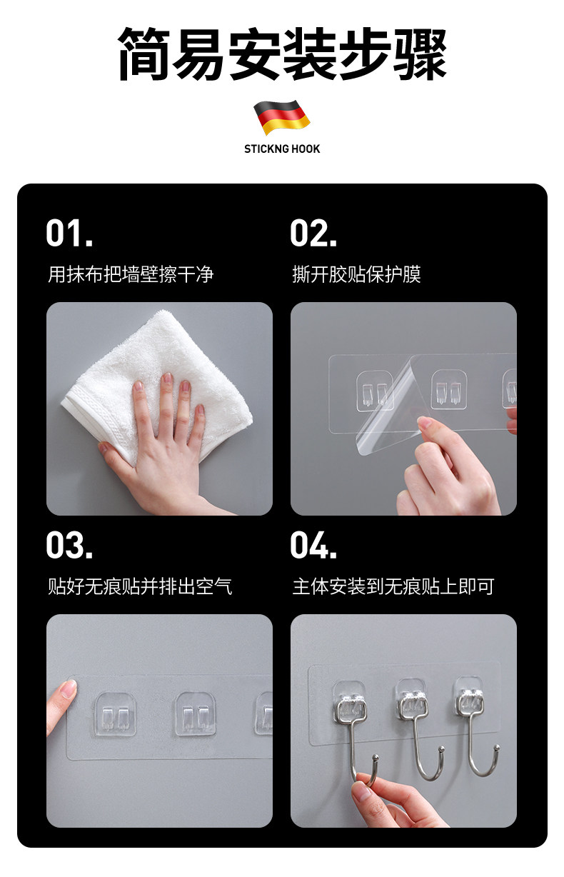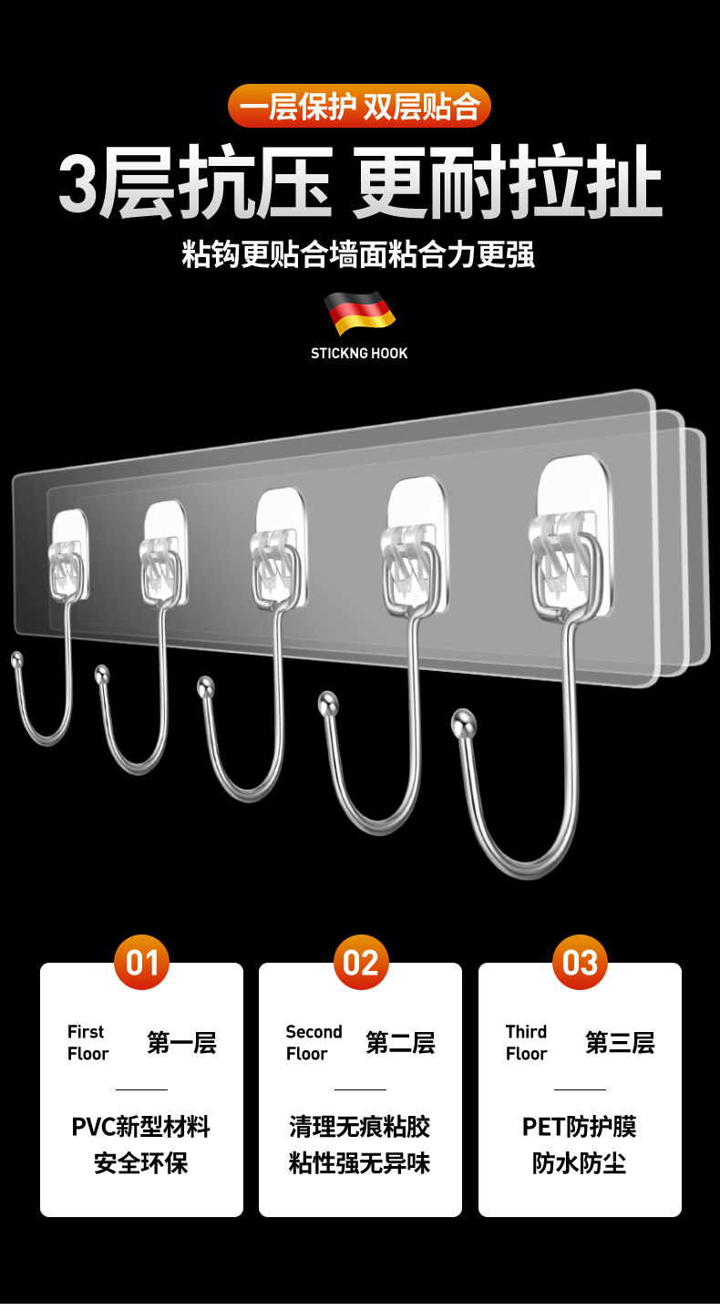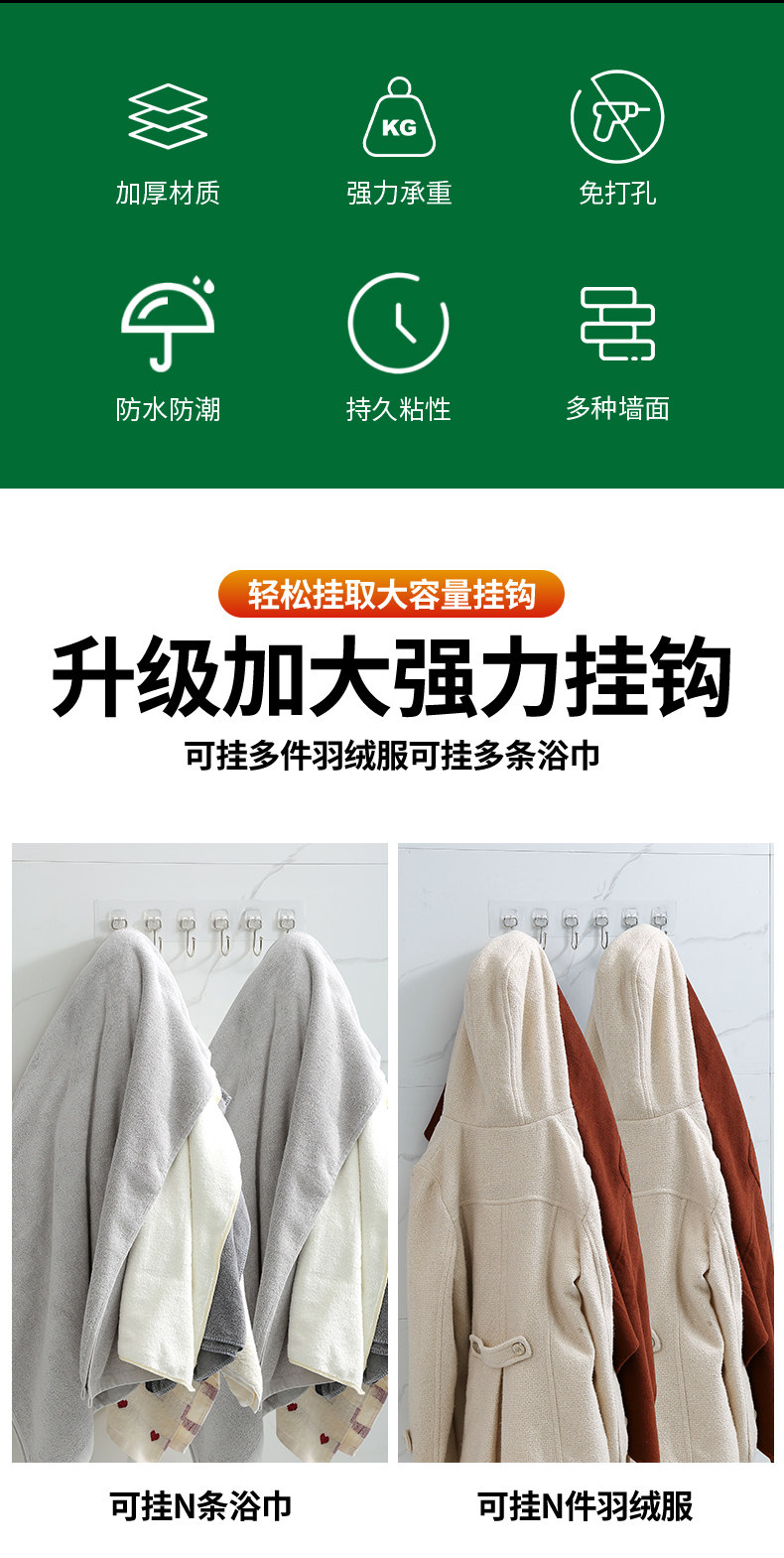 挂钩强力粘胶厨房墙壁门后无痕吸盘免打孔粘钩承重浴室连排壁挂贴 投诉