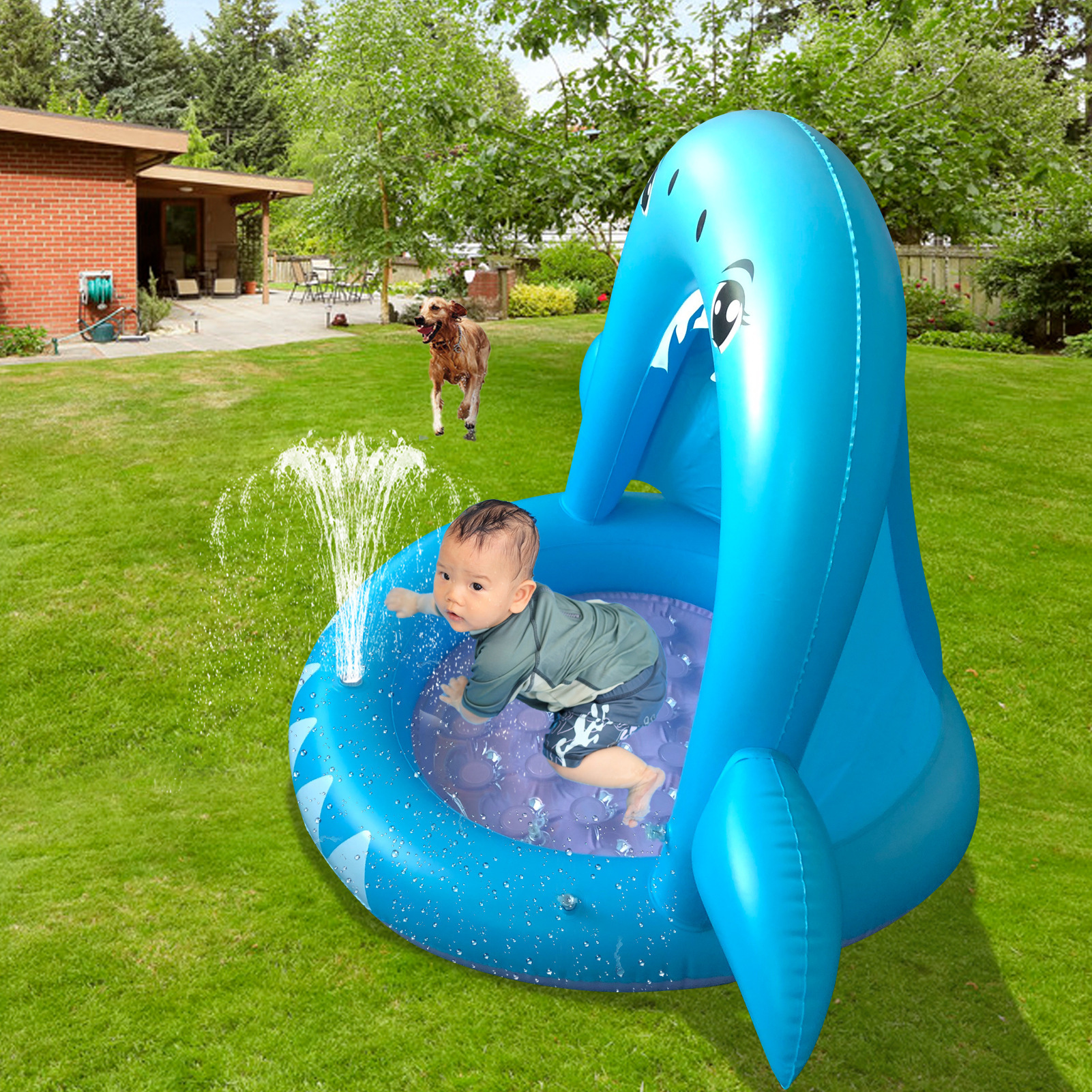 跨境充气喷水垫宝宝夏季戏水必备独角鲨喷水垫