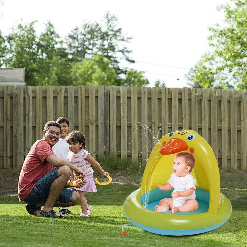 跨境充气喷水垫宝宝夏季戏水必备独角鲨黄鸭鲨鱼款喷水垫