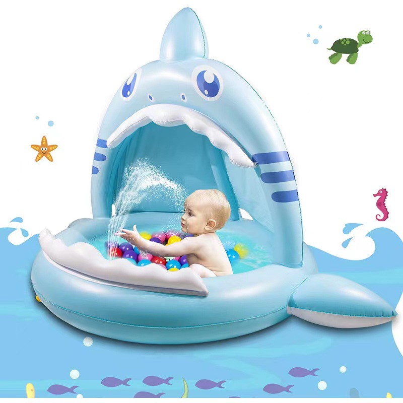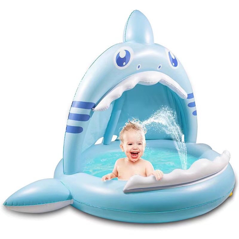 跨境充气喷水垫宝宝夏季戏水必备独角鲨黄鸭鲨鱼款喷水垫 English | 投诉