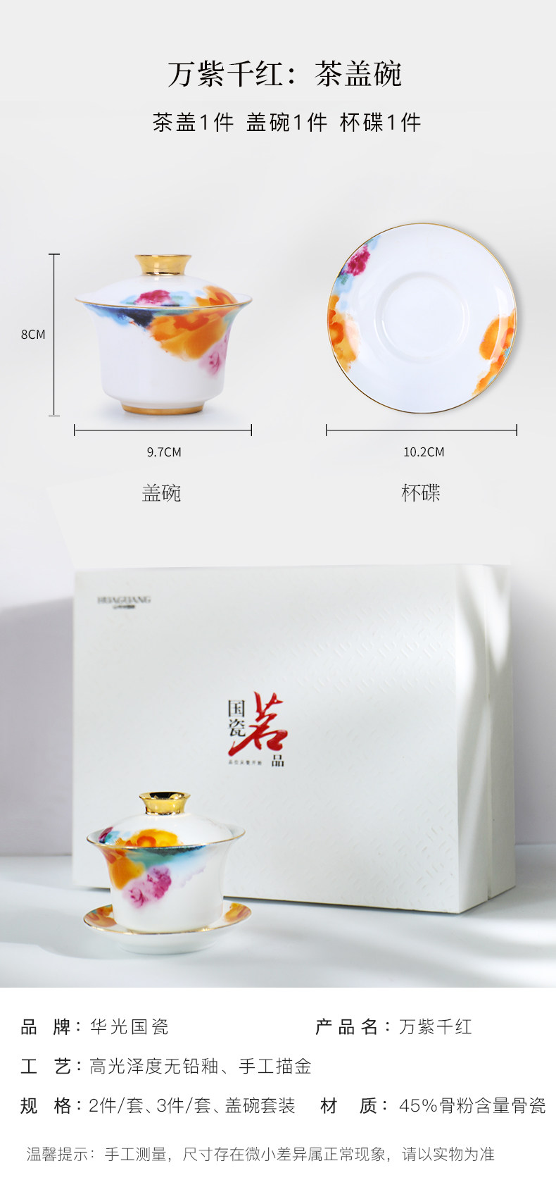 【新品上市】华光陶瓷骨瓷茶具功夫茶具套装整套夫人茶具万紫千红 投诉