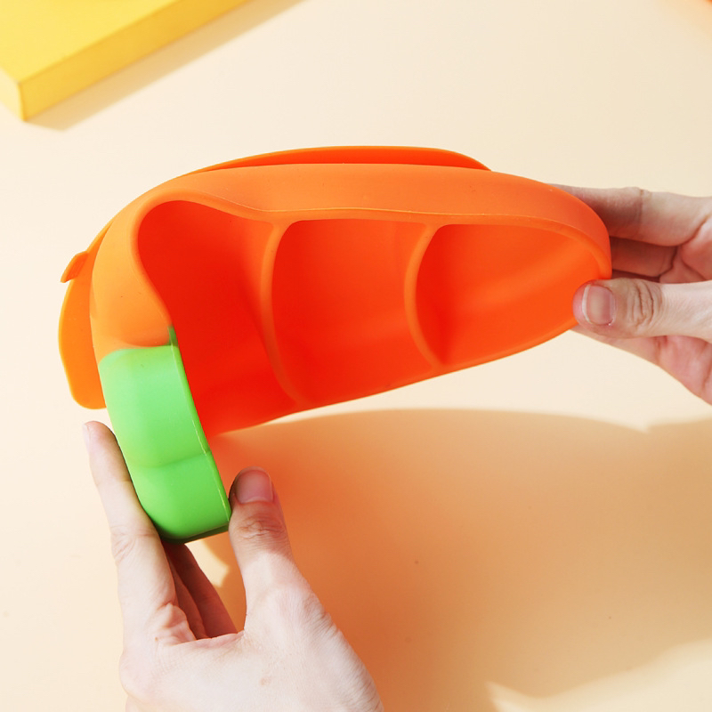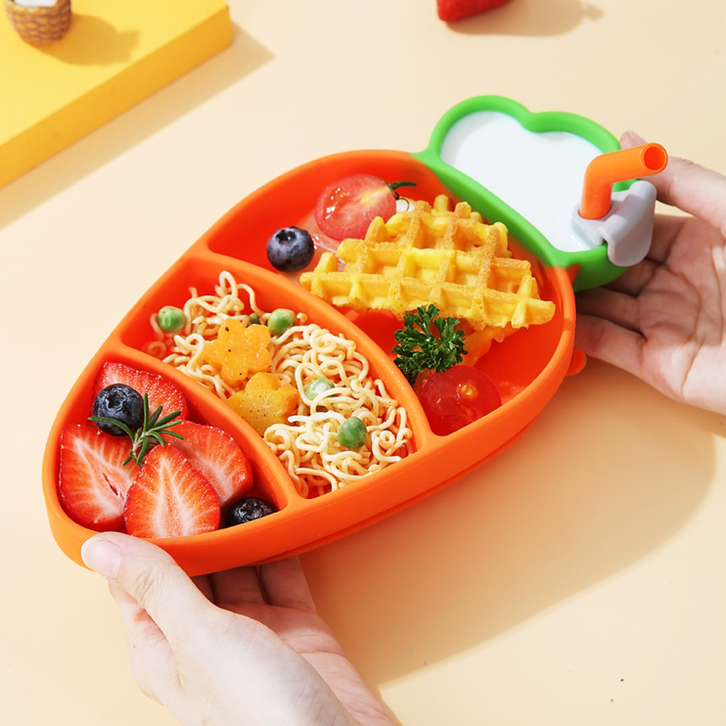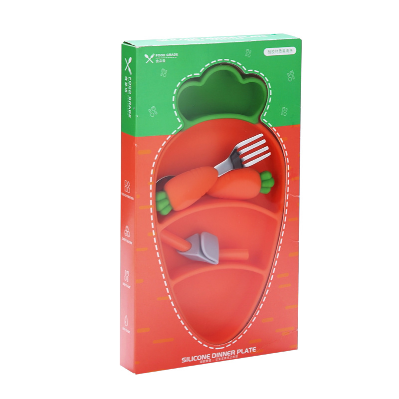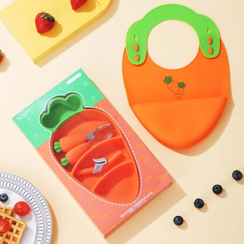 儿童硅胶餐盘胡萝卜防摔吸盘式婴儿餐具套装配叉勺围兜分格辅食碗