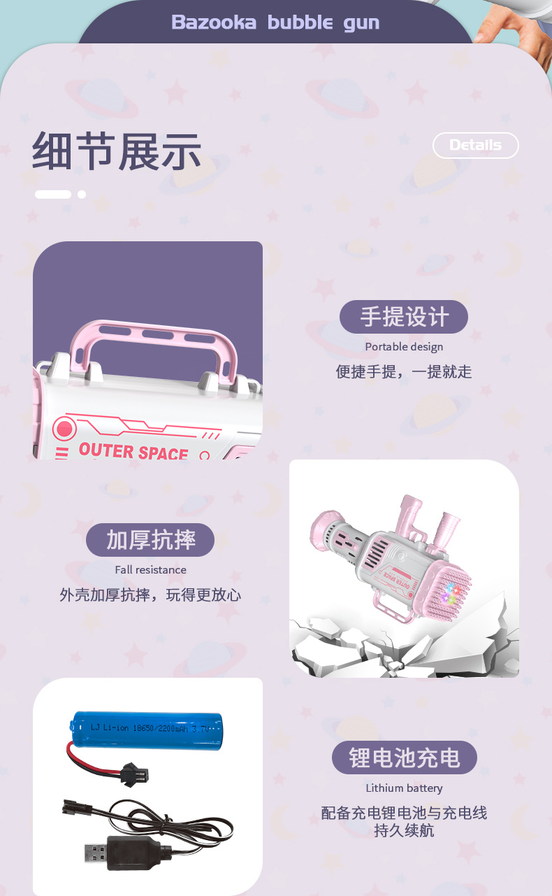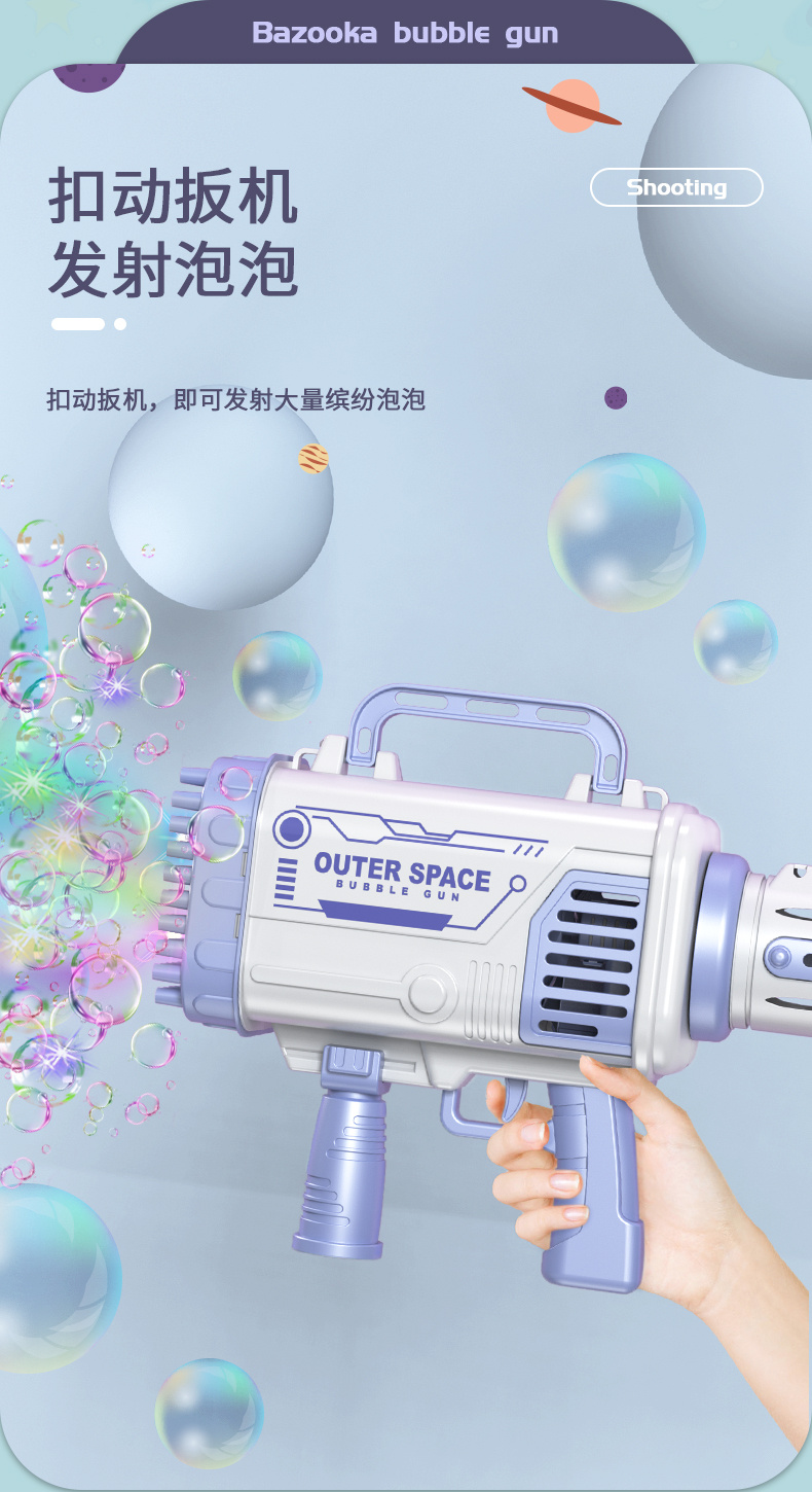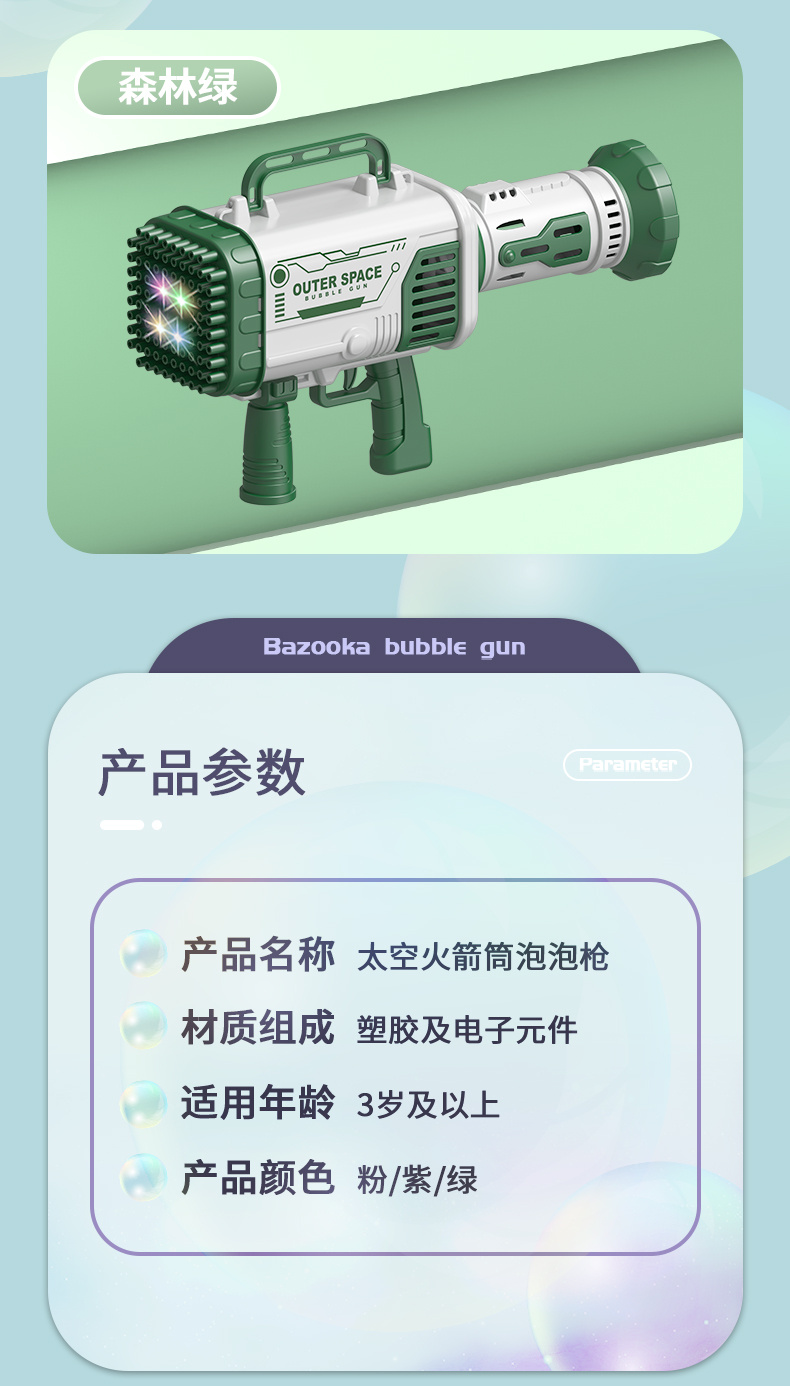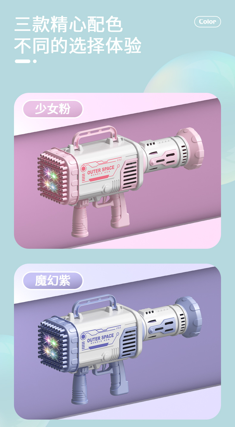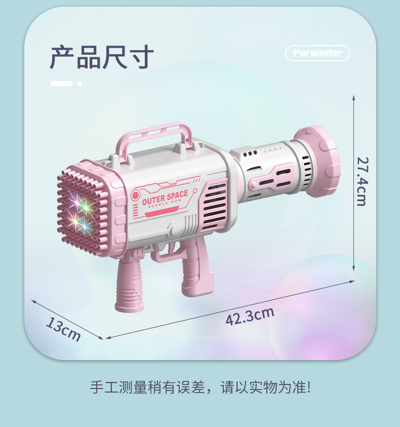 80孔灯光版少女粉太空火箭筒泡泡枪(锂电充电池) 投诉