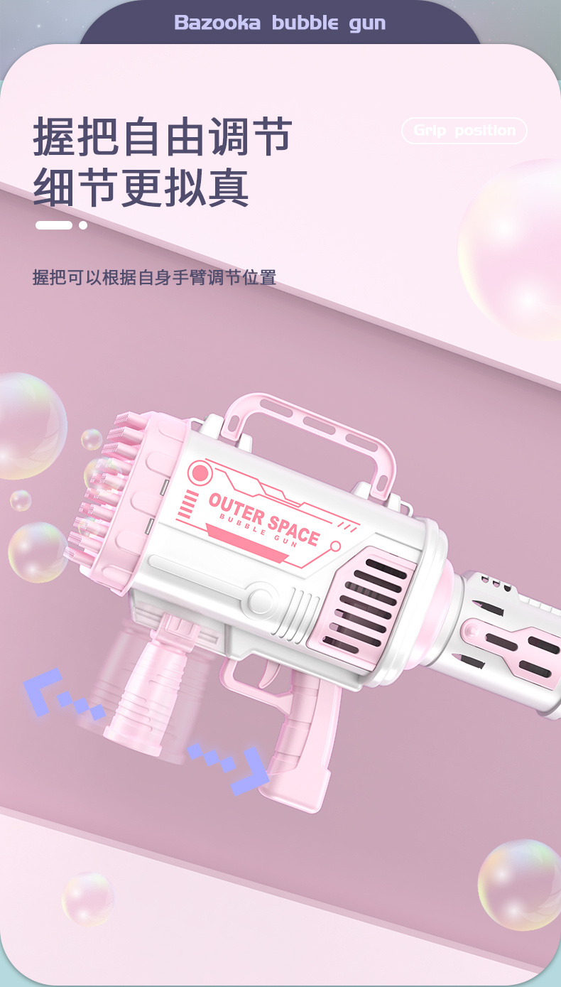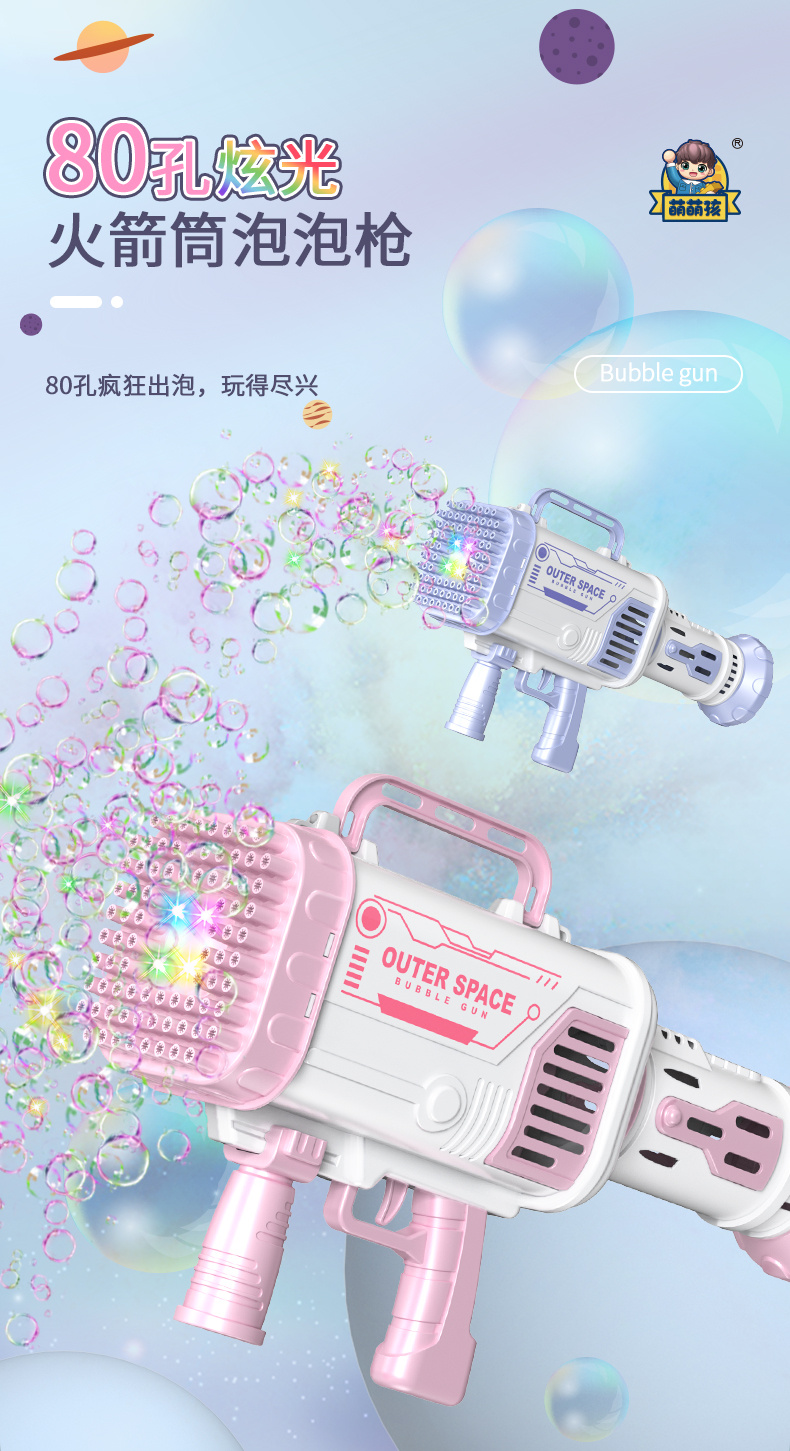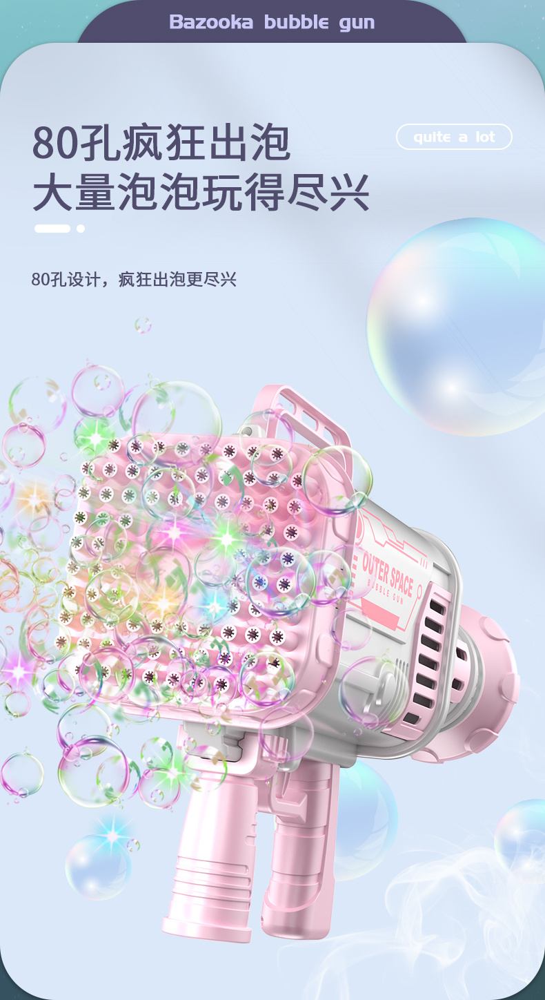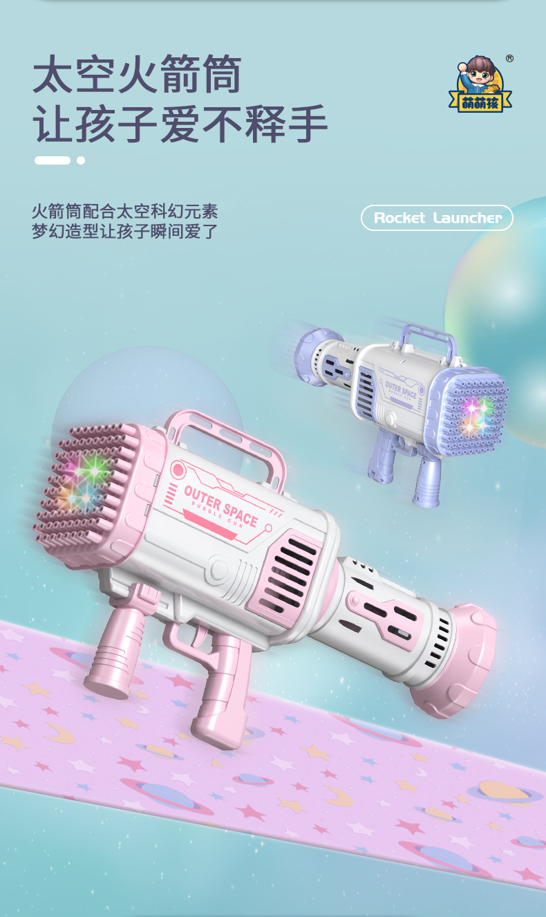80孔灯光版少女粉太空火箭筒泡泡枪(锂电充电池)