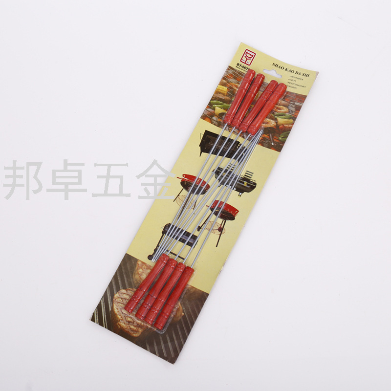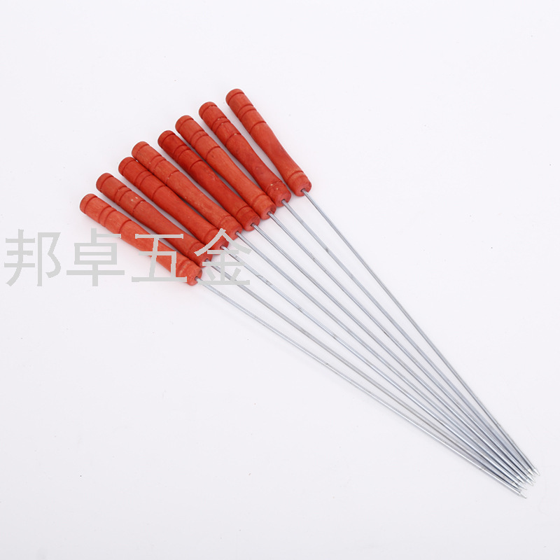 不锈钢木柄烧烤签子 防烫手柄烤针钢签 多用途烧烤针