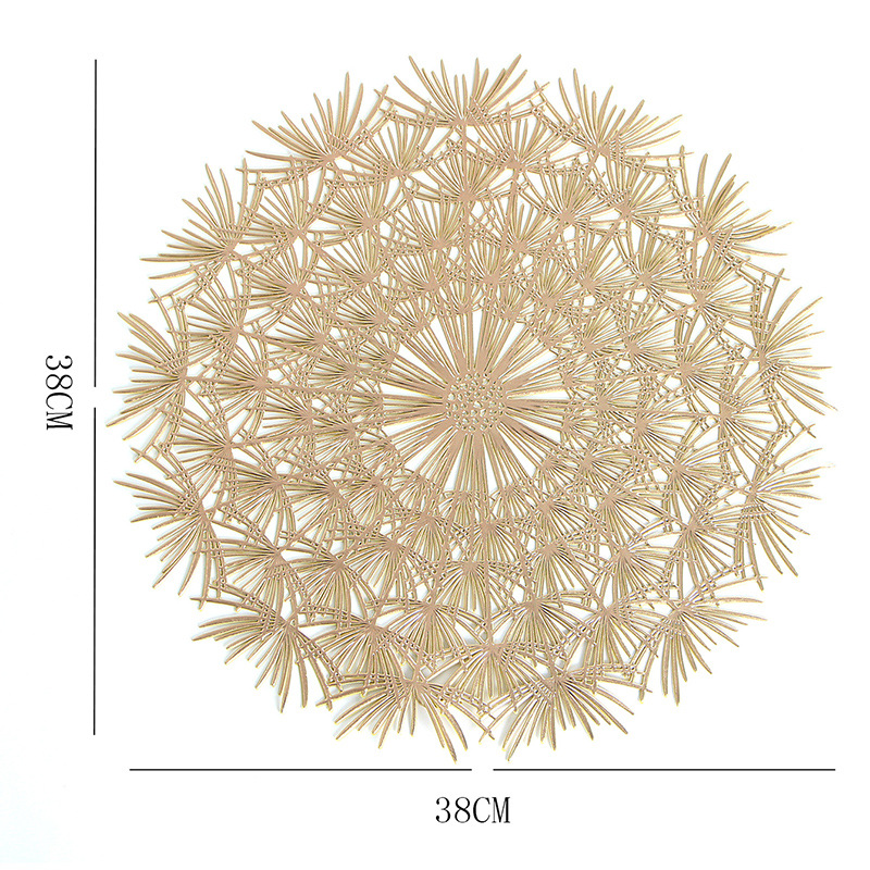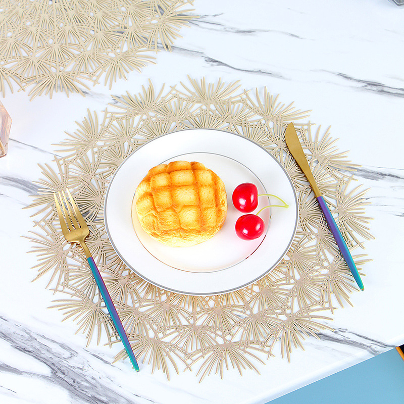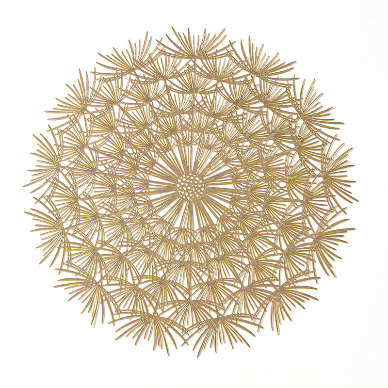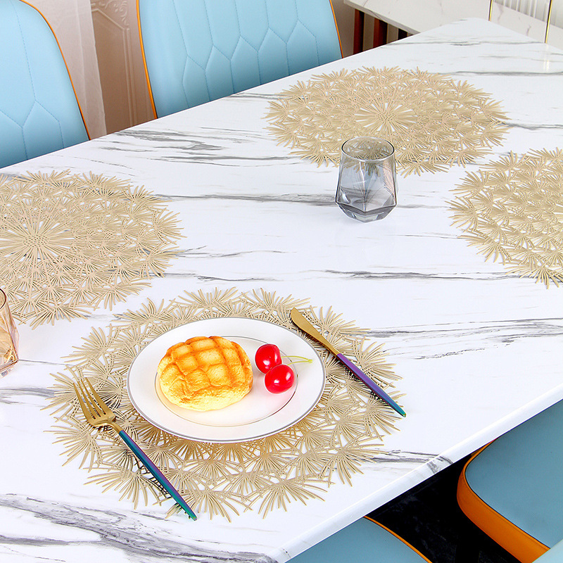 镂空餐垫主要是以优质PVC为主要材料,PVC具有耐磨、防油阻燃等一系列优点,餐垫主要以圆形、长方形为主要设计,放在桌面上可防止杯子、餐具滑落,烫坏台面,同时还能兼顾餐桌美观!
