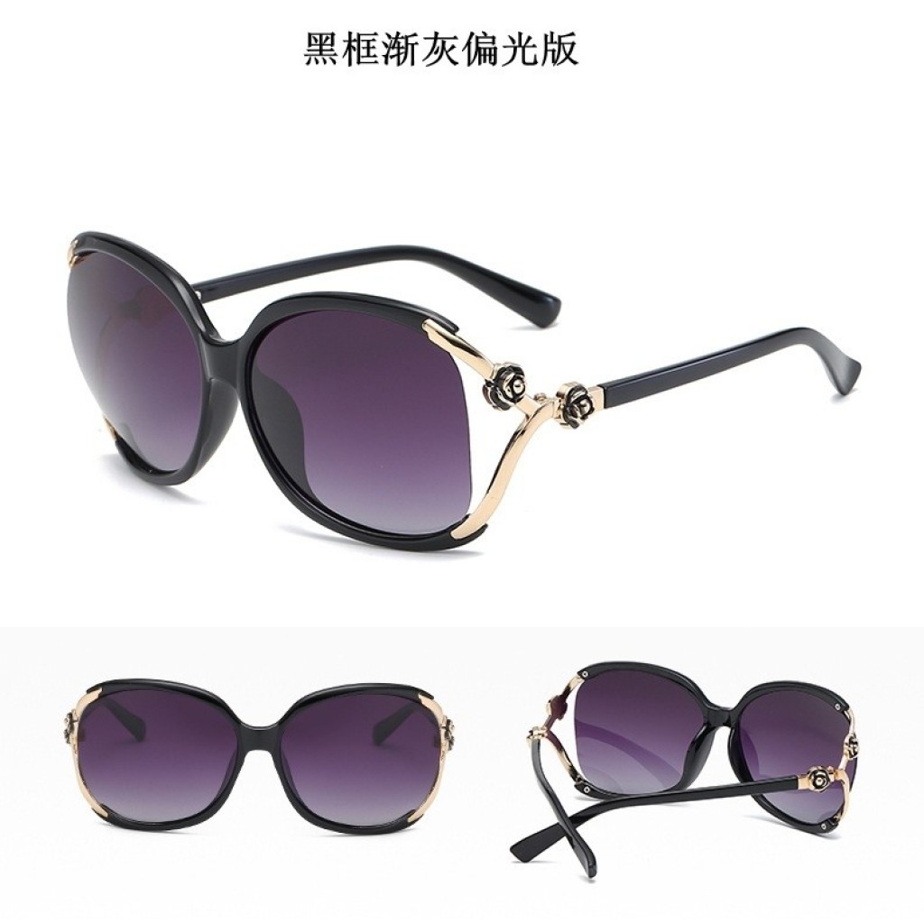 新款山茶花偏光高档太阳镜女士潮同款时尚ins大框圆脸韩版复古包邮