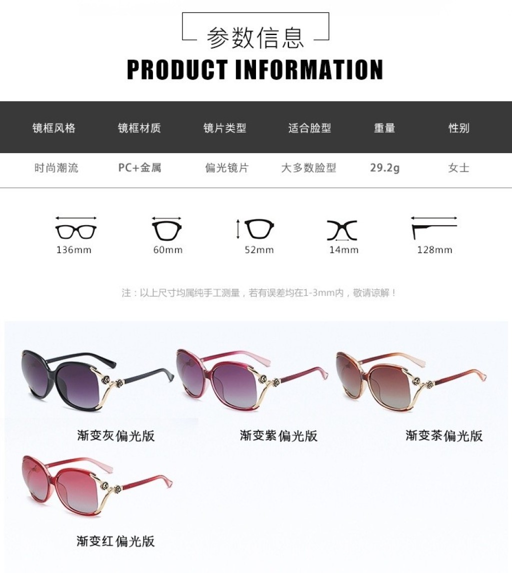 山茶花偏光高档太阳镜女士潮同款时尚ins大框圆脸韩版复古包邮 投诉