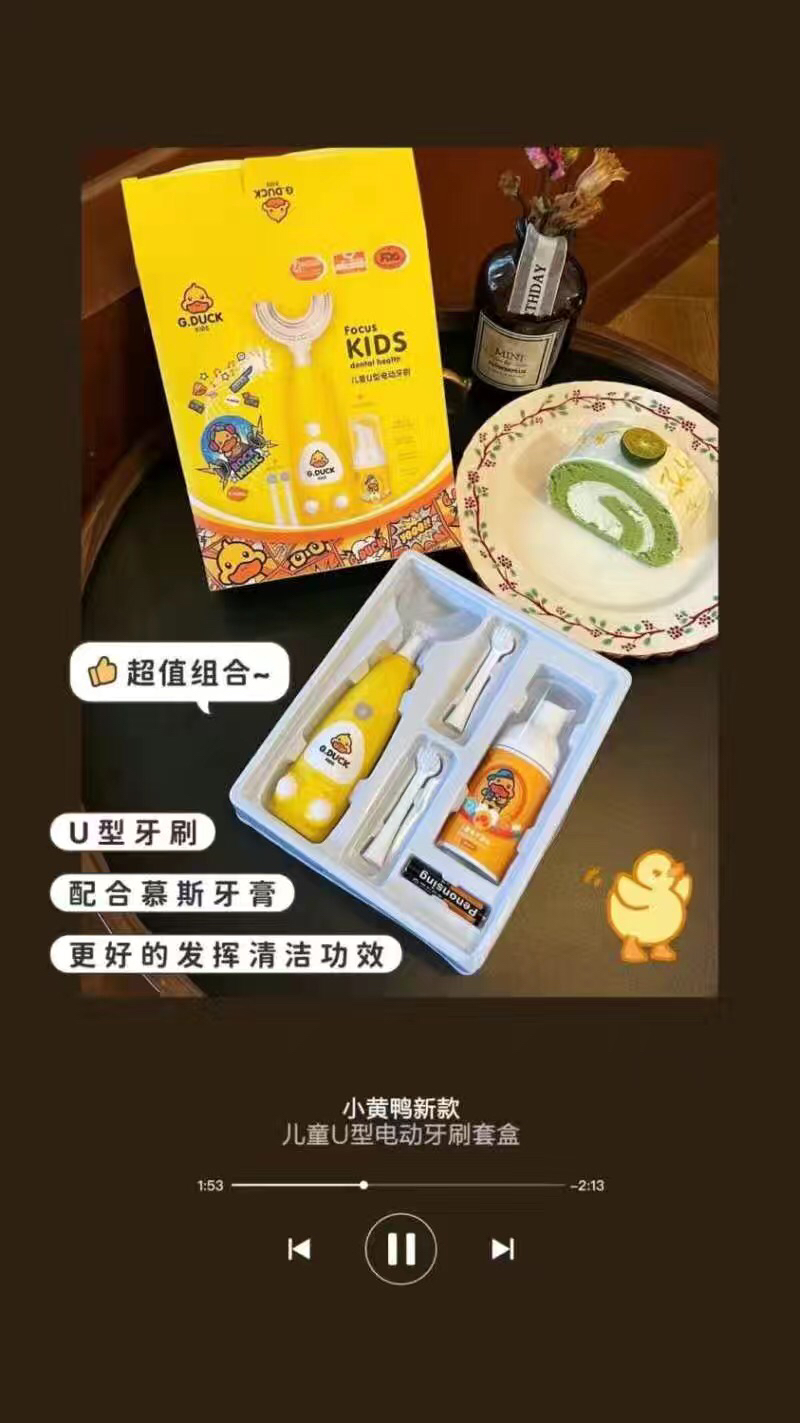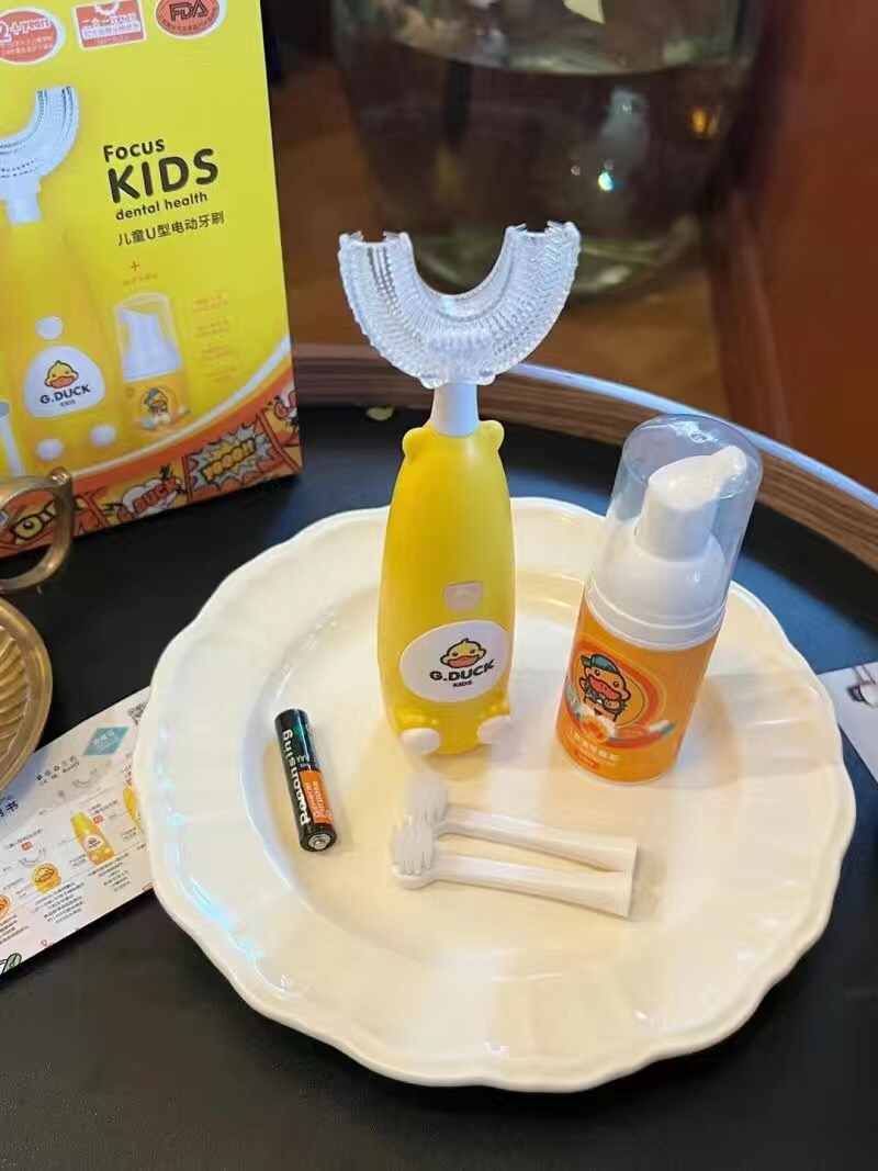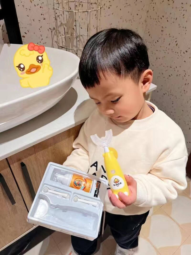 进入宝宝嘴里的必须是安全可靠的,U型电动牙刷的刷头材质是食品级硅胶刷头,自抑菌率高达95%,很放心️💕所以在刷毛数量、硬度、材质上,小黄鸭刷头比别的品牌更加安全卫生~