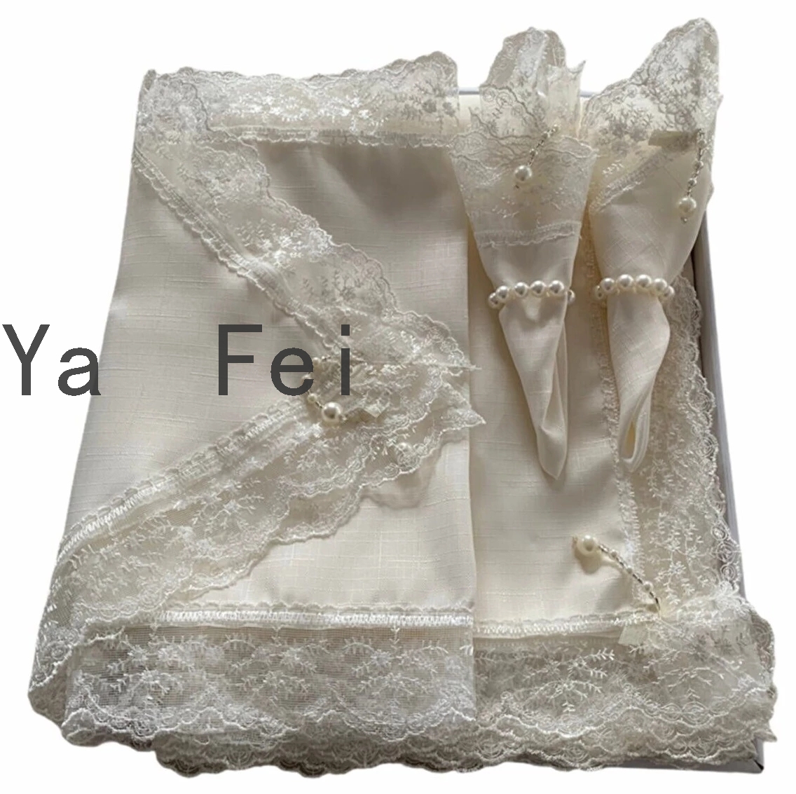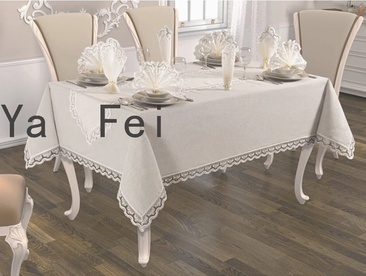 全套亚麻蕾丝桌布防水防油厚长方形婚礼餐桌罩茶桌布手工制作