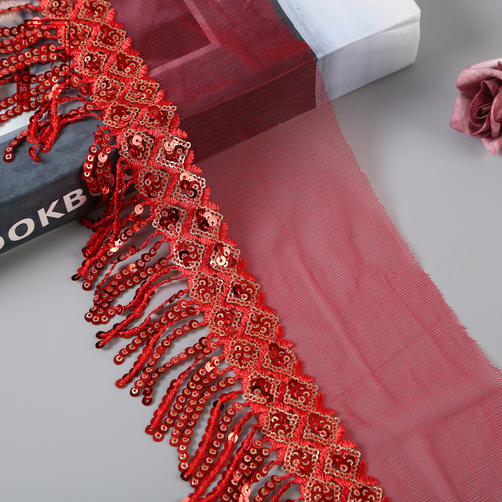 网布网纱波浪亮片珠片吊须多色民族刺绣花经典礼服公主裙服装辅料 English | 投诉