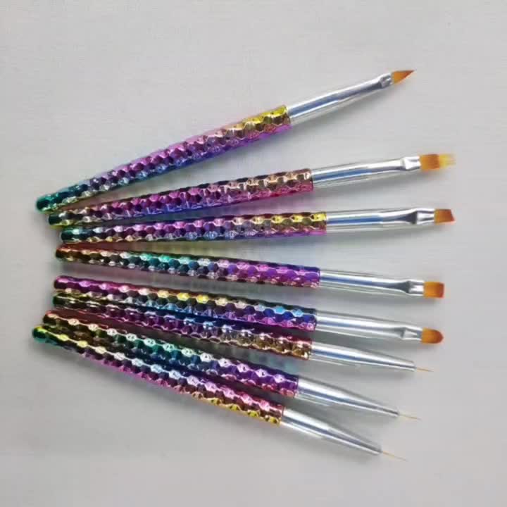美甲工具新款美甲彩绘笔雕花拉线笔圆头笔平头笔光疗笔人鱼色笔杆专供出口 投诉