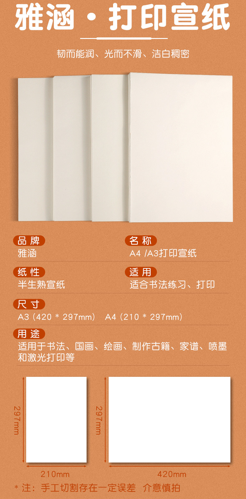 加厚打印宣纸a4半生熟A4A3宣纸打印纸喷墨激光家谱古籍毛笔字帖