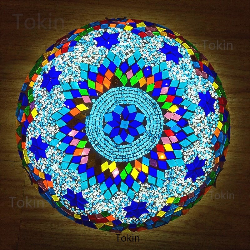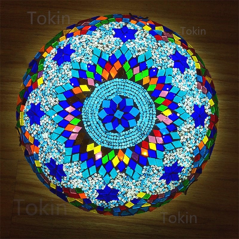 灯罩工艺:纯手工玻璃马赛克贴片工艺