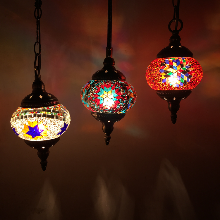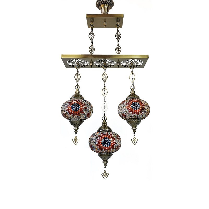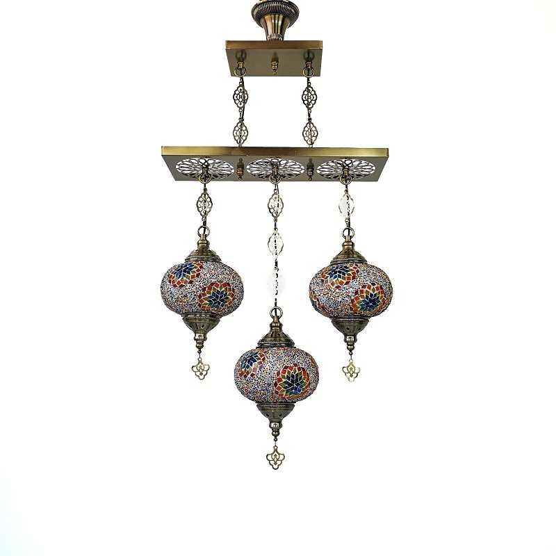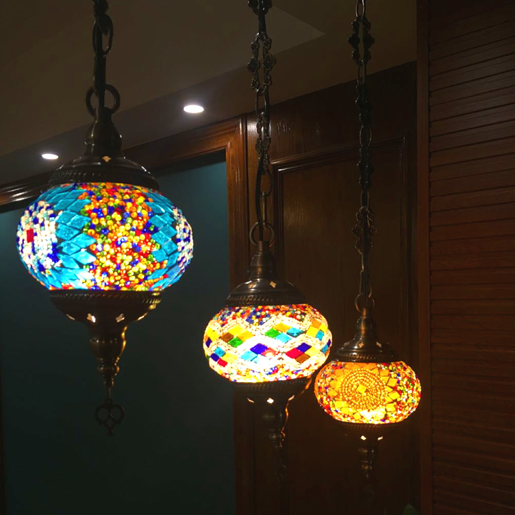 【推荐理由】2020年盛夏新品,镂空雕花3头吊灯是土耳其风格手工马赛克灯饰里面比较特别的款式。常用于餐厅吧台、酒店前台、特色餐厅、咖啡厅、酒店、民宿、火锅店、商场装饰、足浴中心等。今年夏季,我们重新将颜色进行系统升级,升级后的图案更加系统关联化、体系化、异域大方、原汁原味。