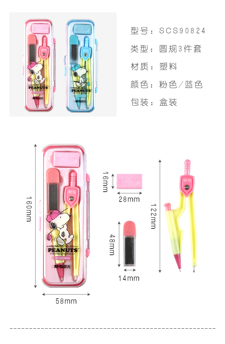 晨光圆规史努比高尔夫铅芯橡皮卡通绘图工具学生考试文具SCS90824 投诉