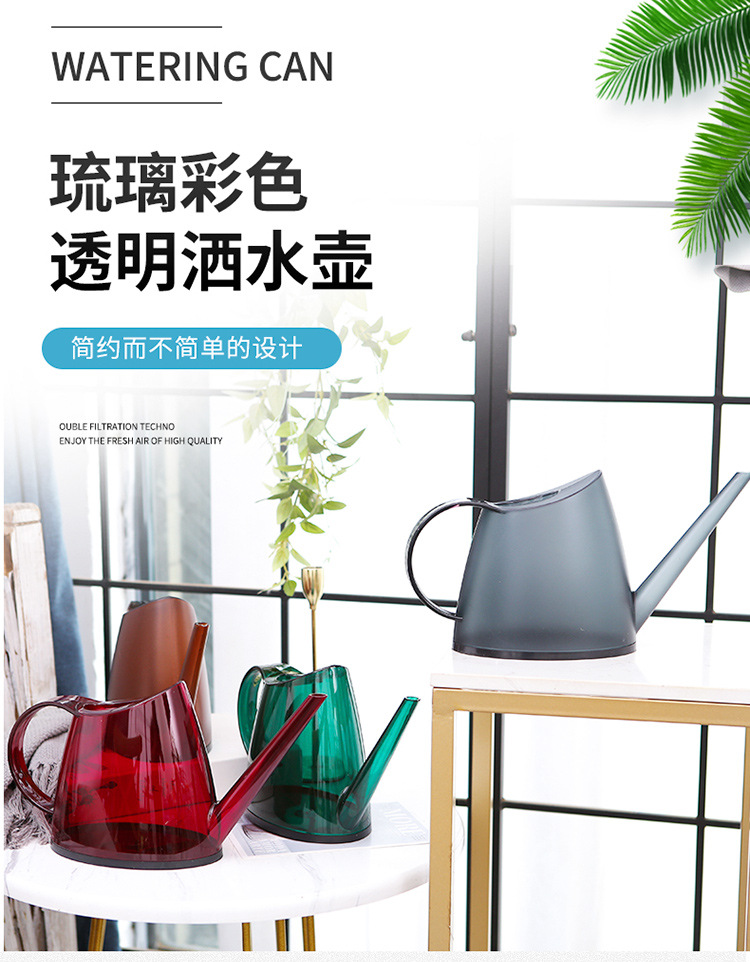 缤纷塑料浇花透明磨砂浇水壶家用透明树脂园艺户外便椭圆携洒水壶