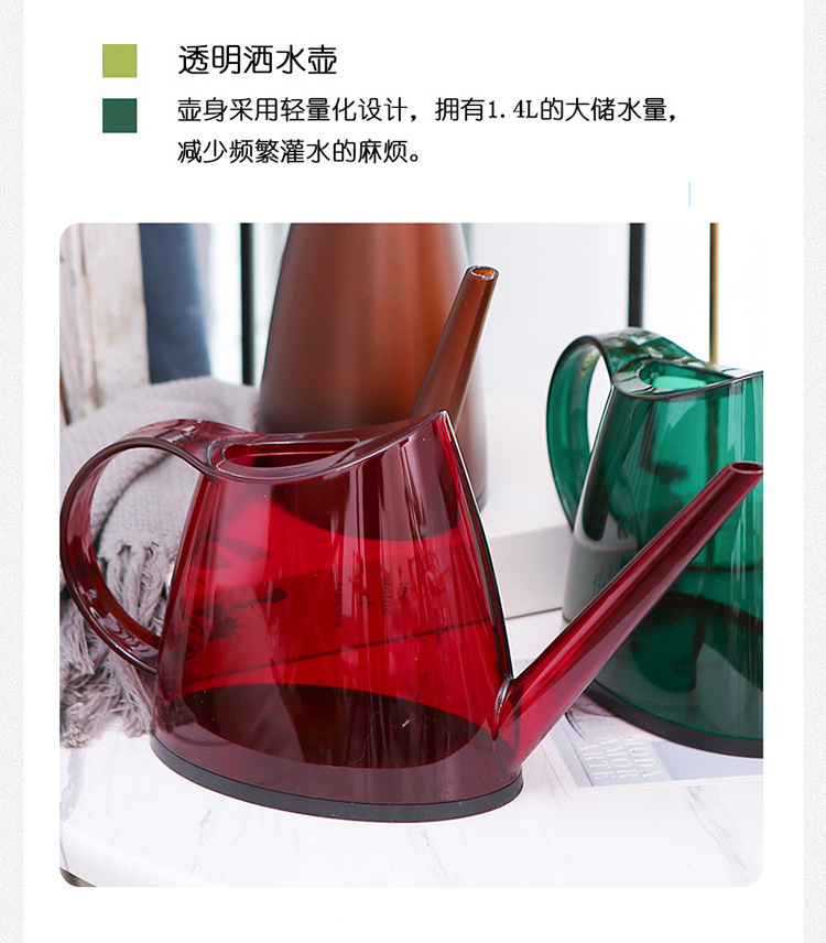 缤纷塑料浇花透明磨砂浇水壶家用透明树脂园艺户外便椭圆携洒水壶 投诉