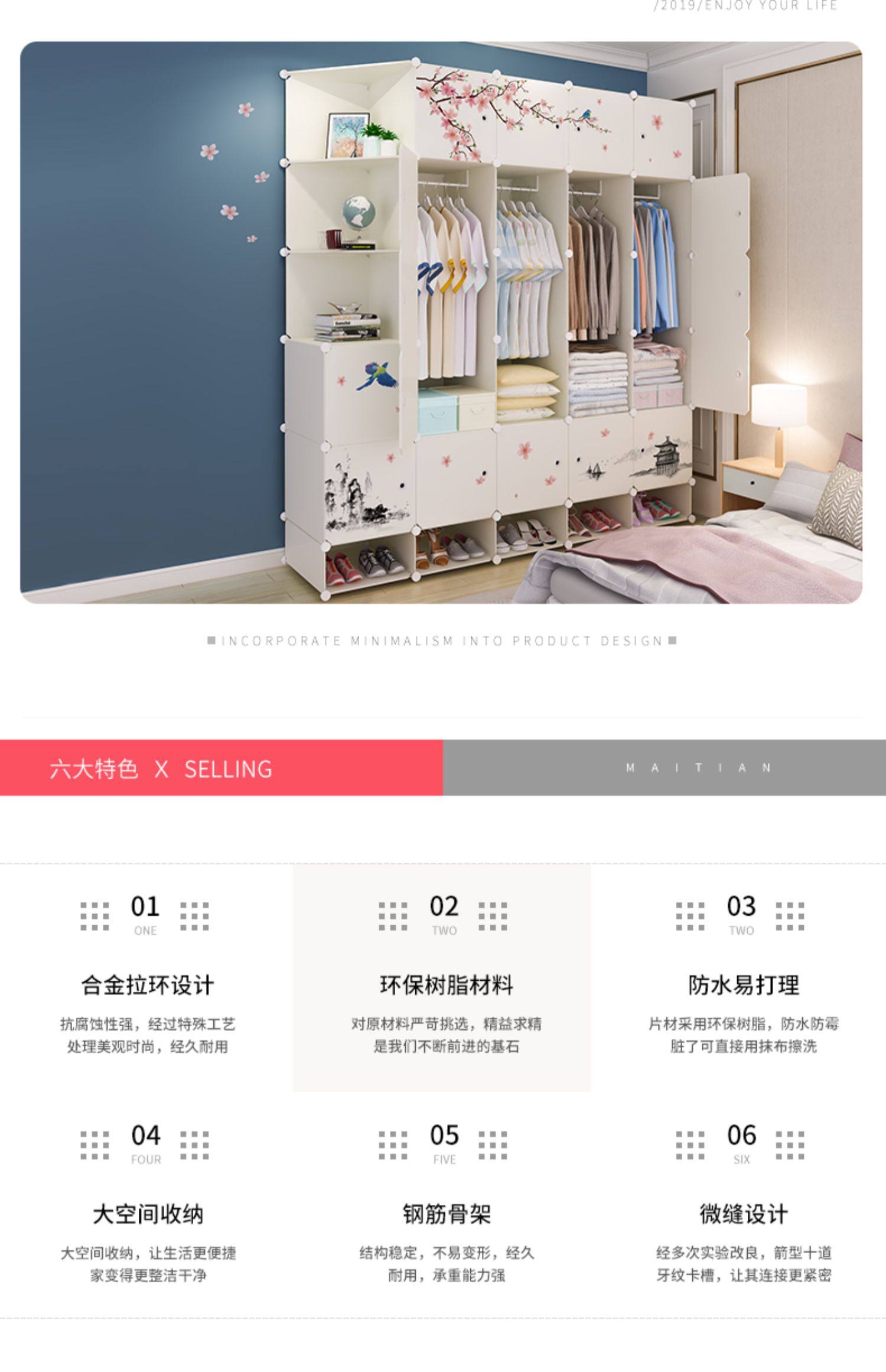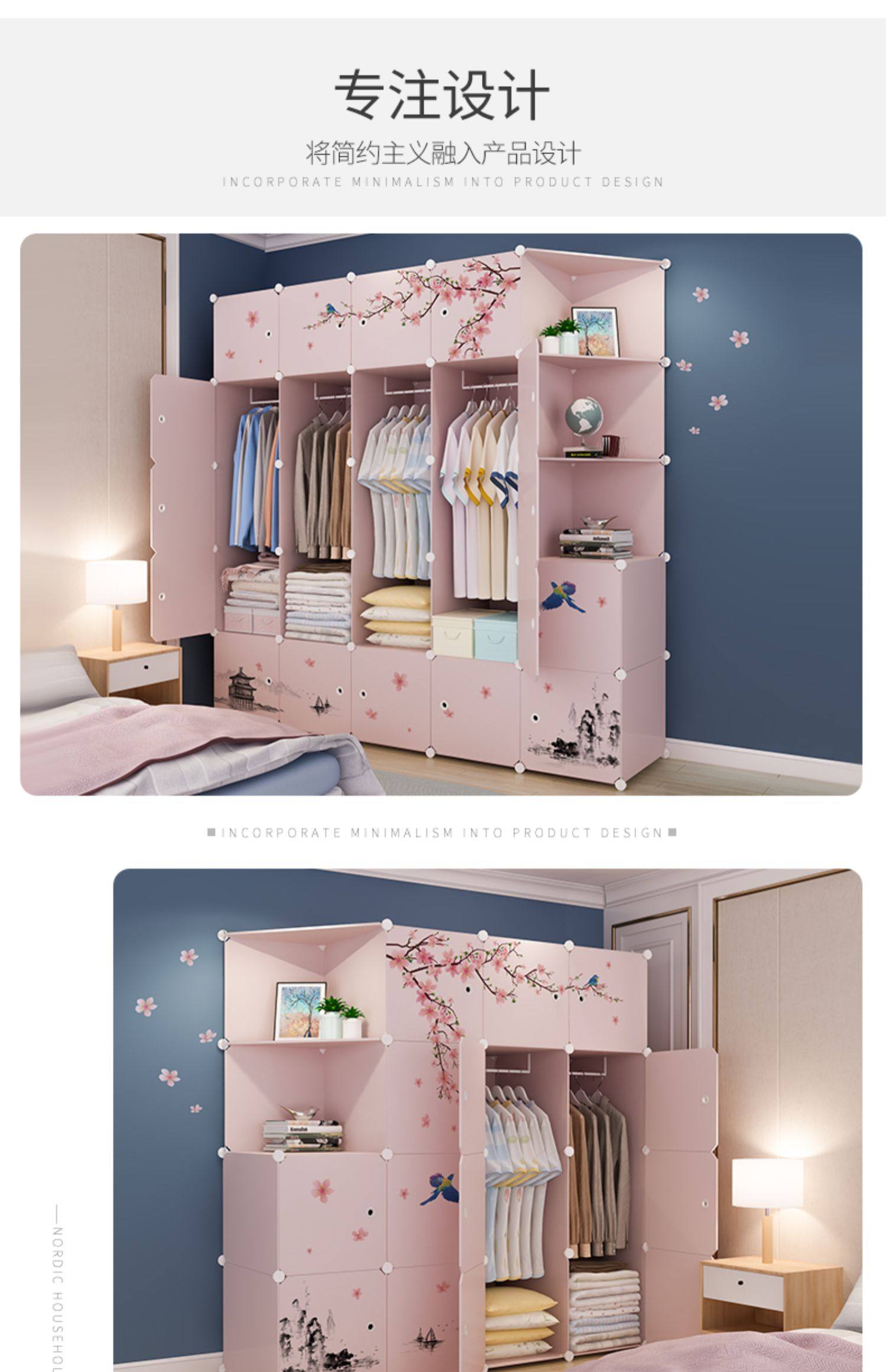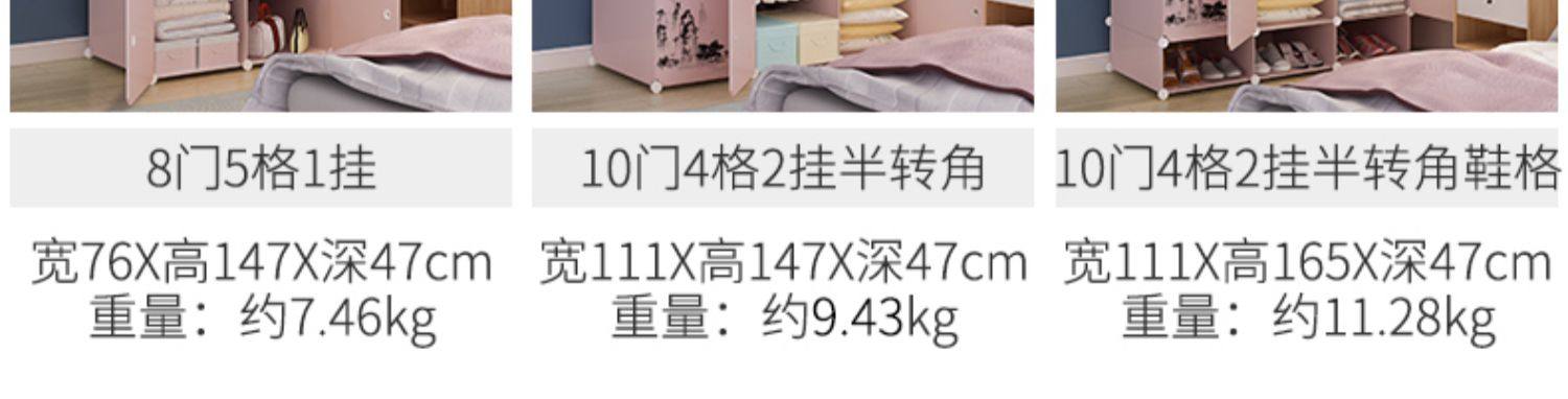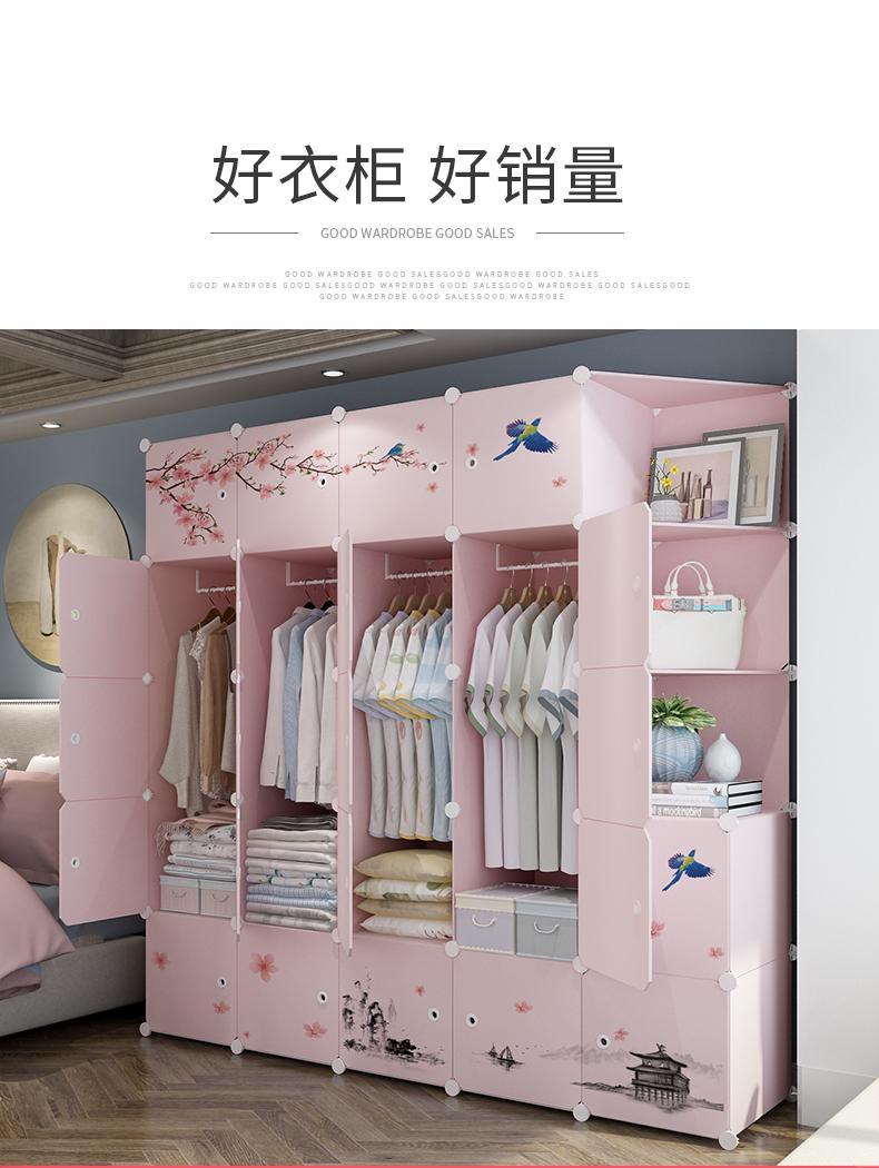 简易衣柜组装家用卧室塑料柜子挂收纳现代简约出租房储物柜布衣橱