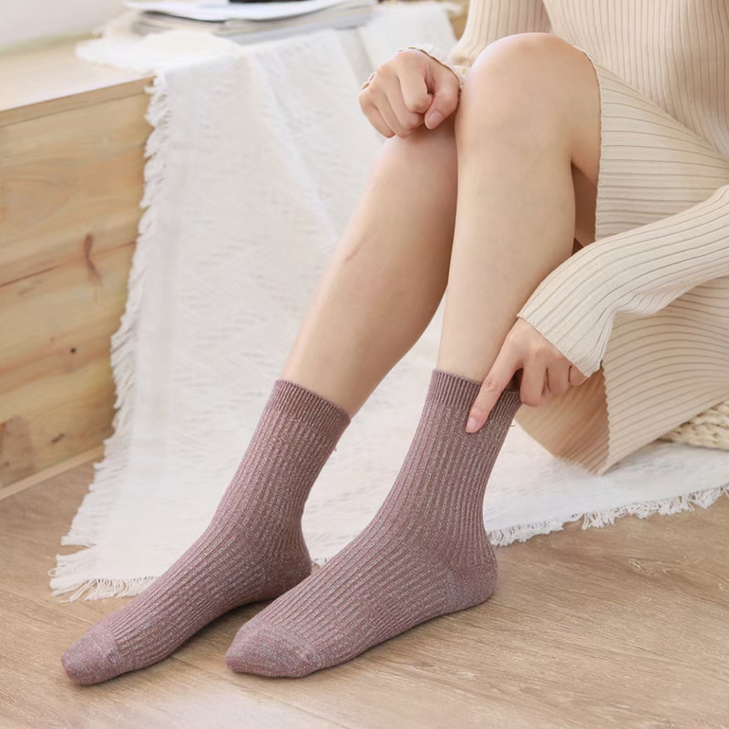 喜朗登春秋冬款金银丝羊绒女士堆堆袜子