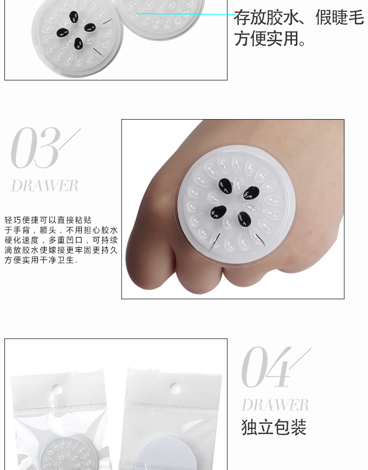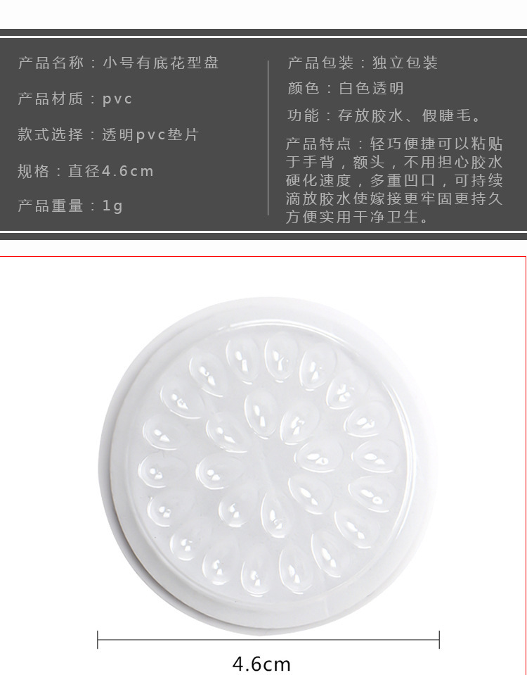 工厂批发纹绣胶水托盘透明PVC垫片带底座小号花型盘嫁接睫毛工具专供出口 English | 投诉