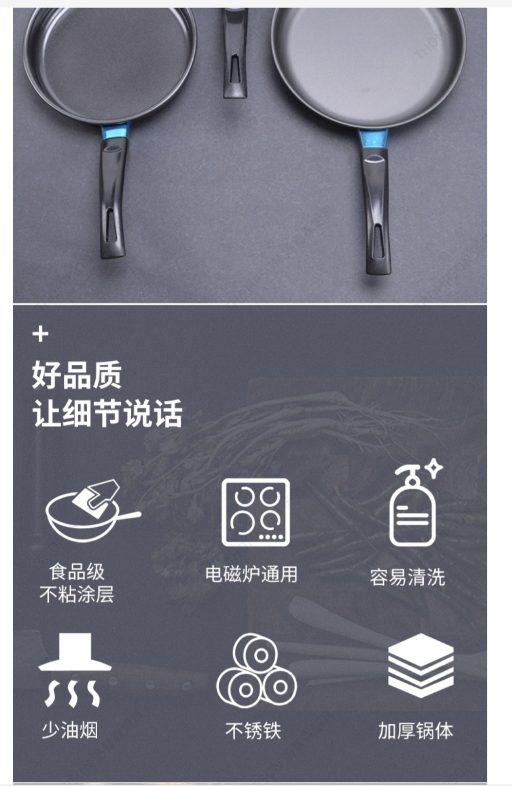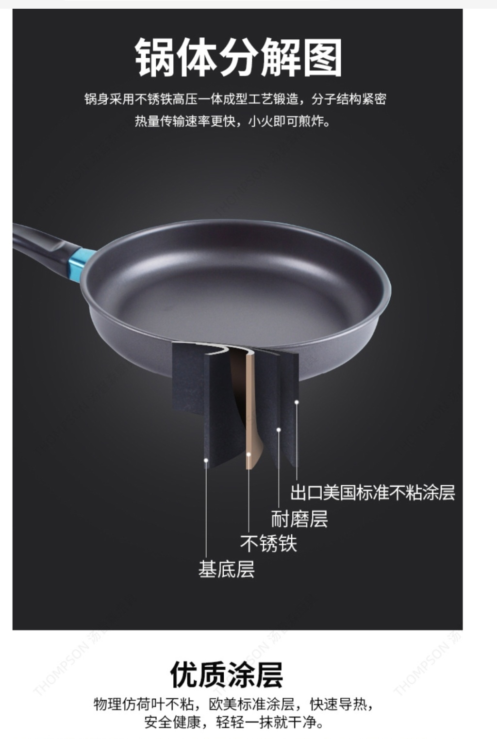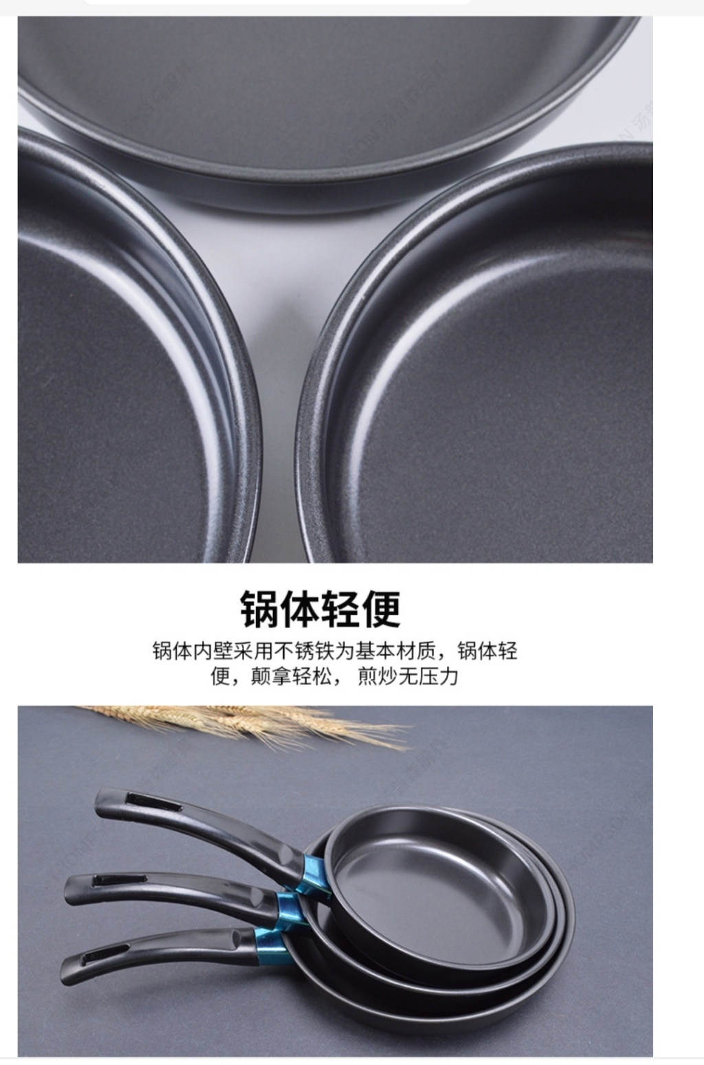 锅体采用不锈钢精铁,内部图层使用不粘。适合煎炸以及各种辅食