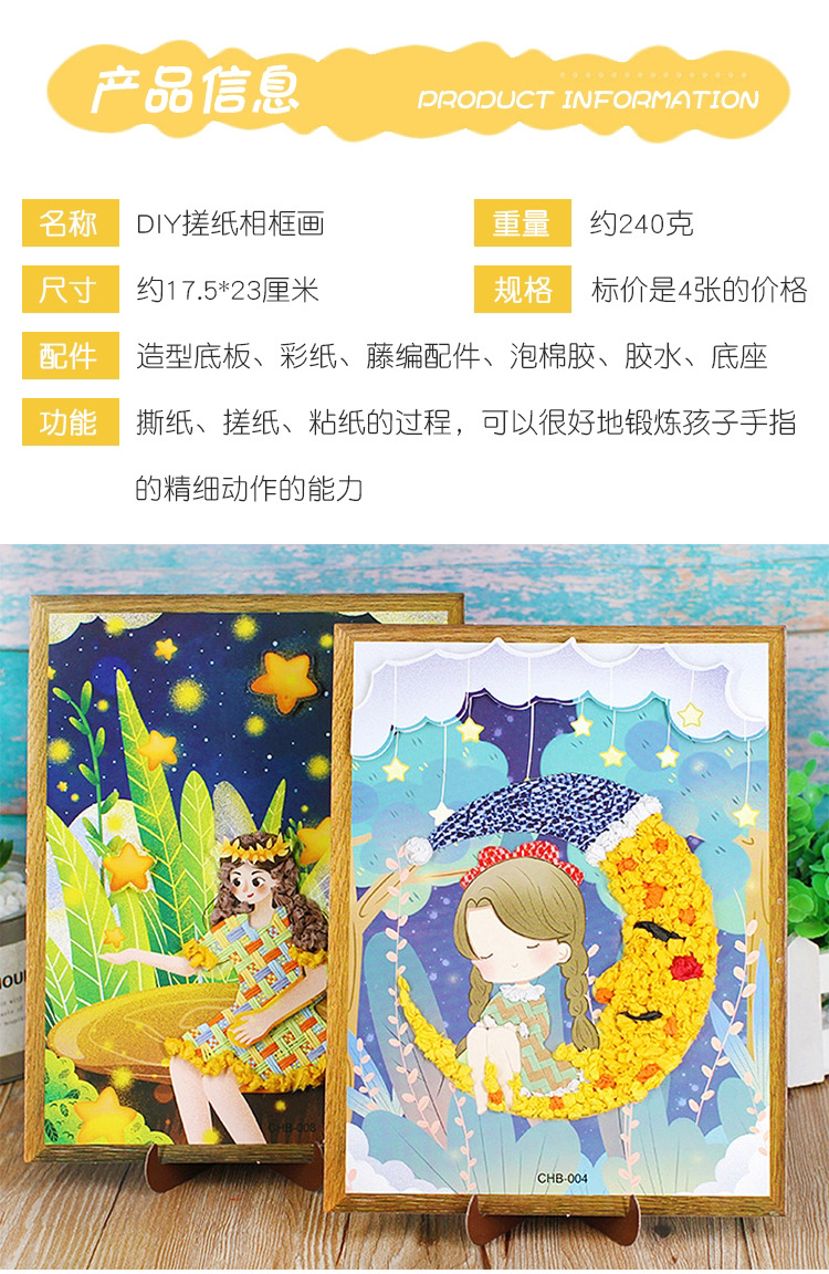 儿童手工创意DIY搓纸揉纸画幼儿园卡通揉纸画手工制作材料包礼品 投诉