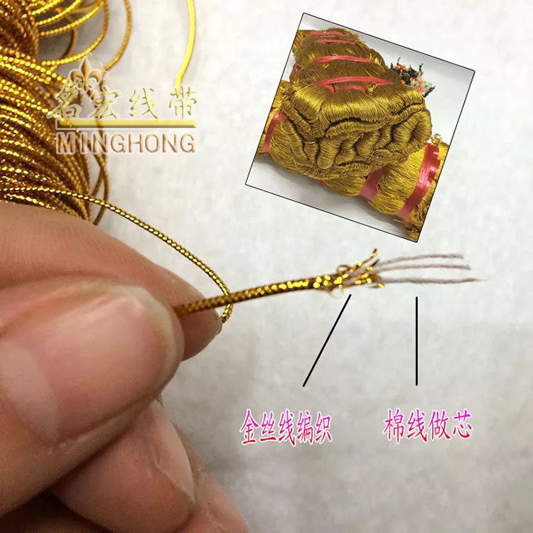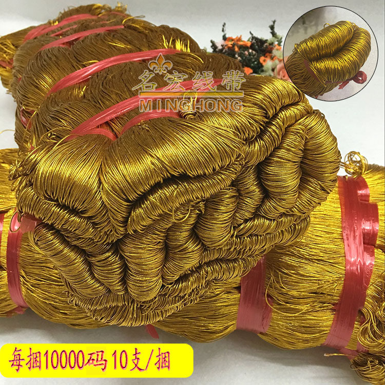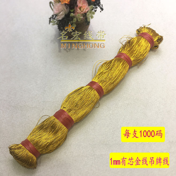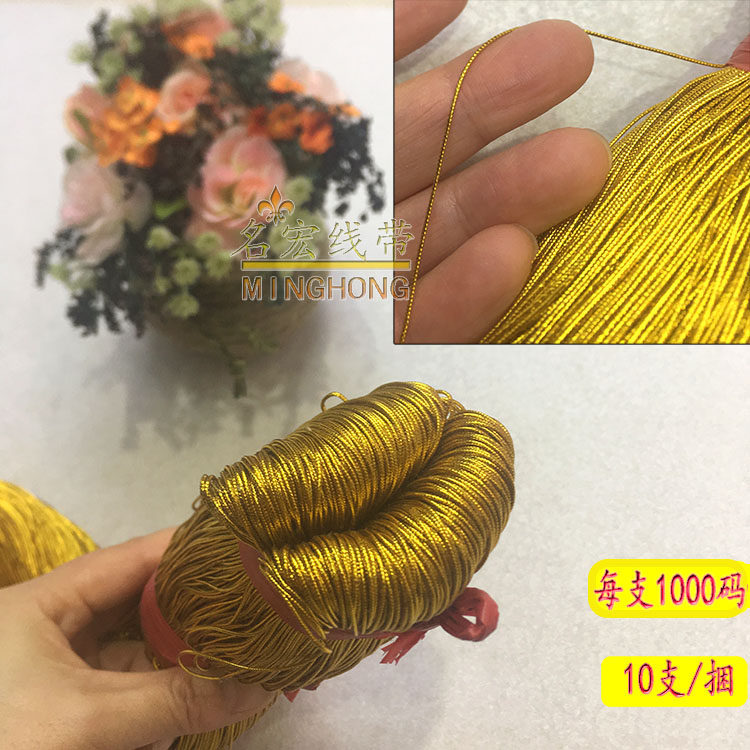 该宝贝采用高温金丝线加棉线由锭机编织而成,圆形有芯直径约1MM ,具有环保耐磨不掉色,颜色鲜艳亮丽,外形超细圆润无弹力,把数大米数多,每支约1000码等于910米左右 整捆10支约10000码,可用各种商标吊牌线,玩具辅料,舞台舞蹈服装辅料及民族服装花边辅料,饰品头饰。工艺品装饰,喜庆包装DIY手工饰品等 店内还有弹力吊牌线在店铺其他链接,有需要的亲进店逛逛收藏本店以备不时之需。