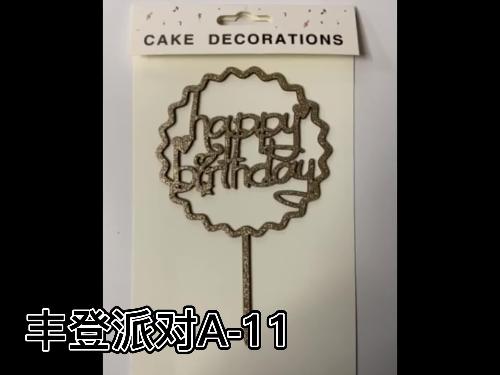 精致木质重量轻带金粉生日快乐甜品生日蛋糕插件