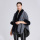 欧美新款加绒加厚仿獭兔毛领披肩斗篷宽松大码针织开衫外套女