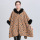 2021欧美大码宽松豹纹毛领连帽针织开衫外套女斗篷披肩1531#