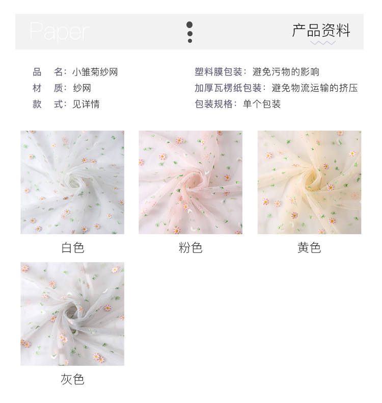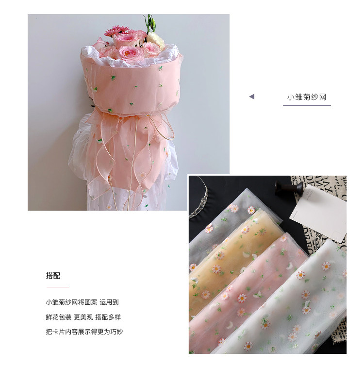 花衣裳 绣花网纱小雏菊鲜花包装花艺仙女纱花束外包装拍照背景纱