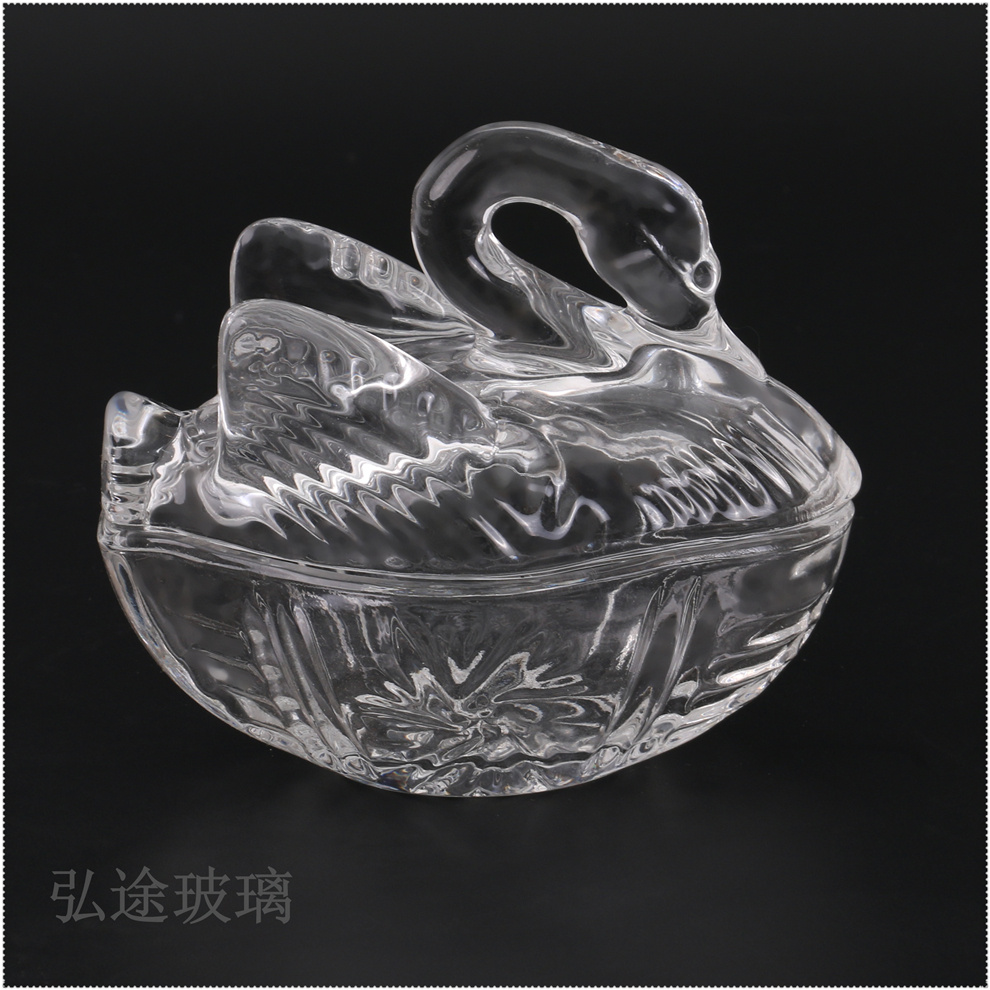 天鹅玻璃收纳罐子化妆棉签棒储物首饰糖缸ins北欧水晶浮雕糖果盒 投诉