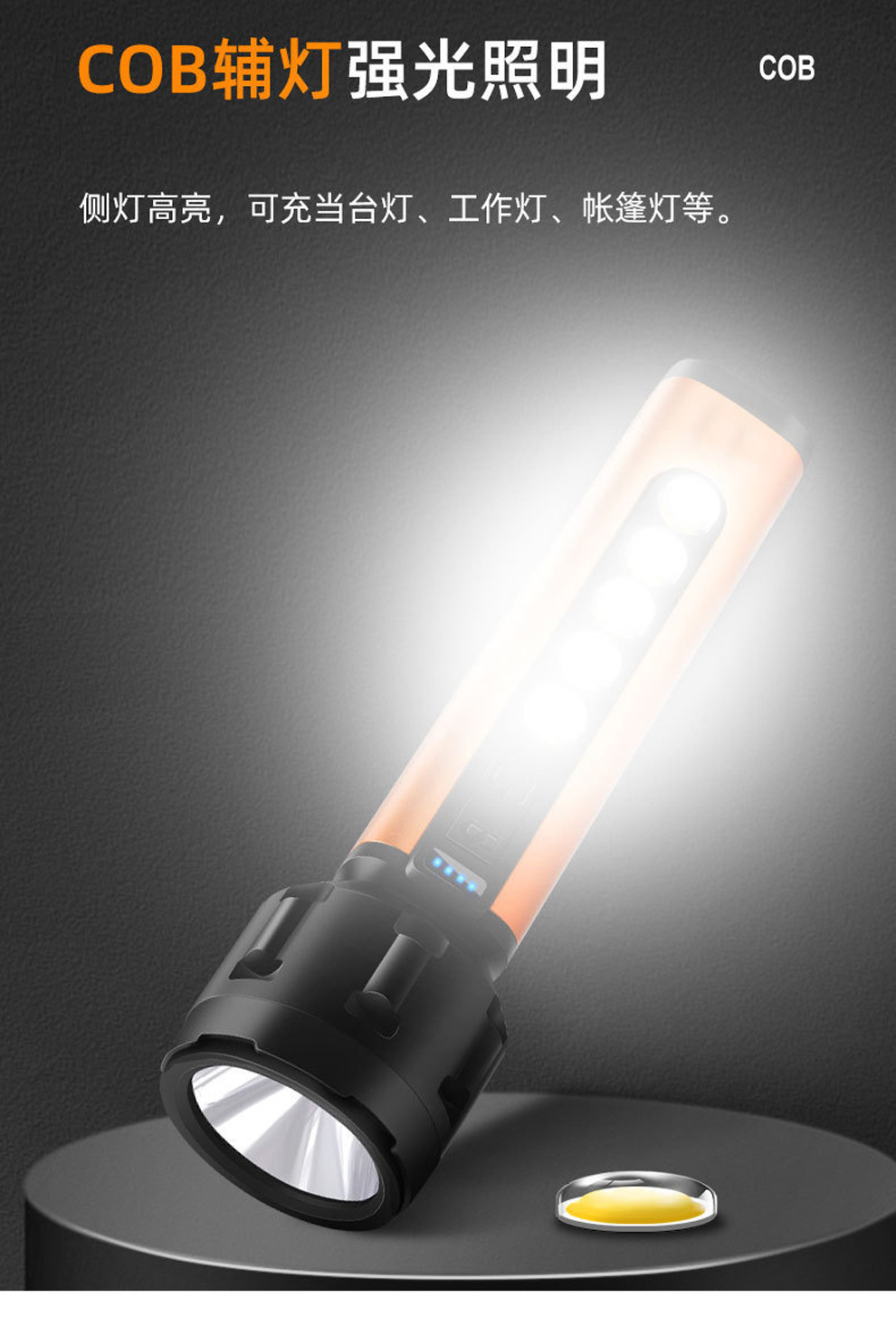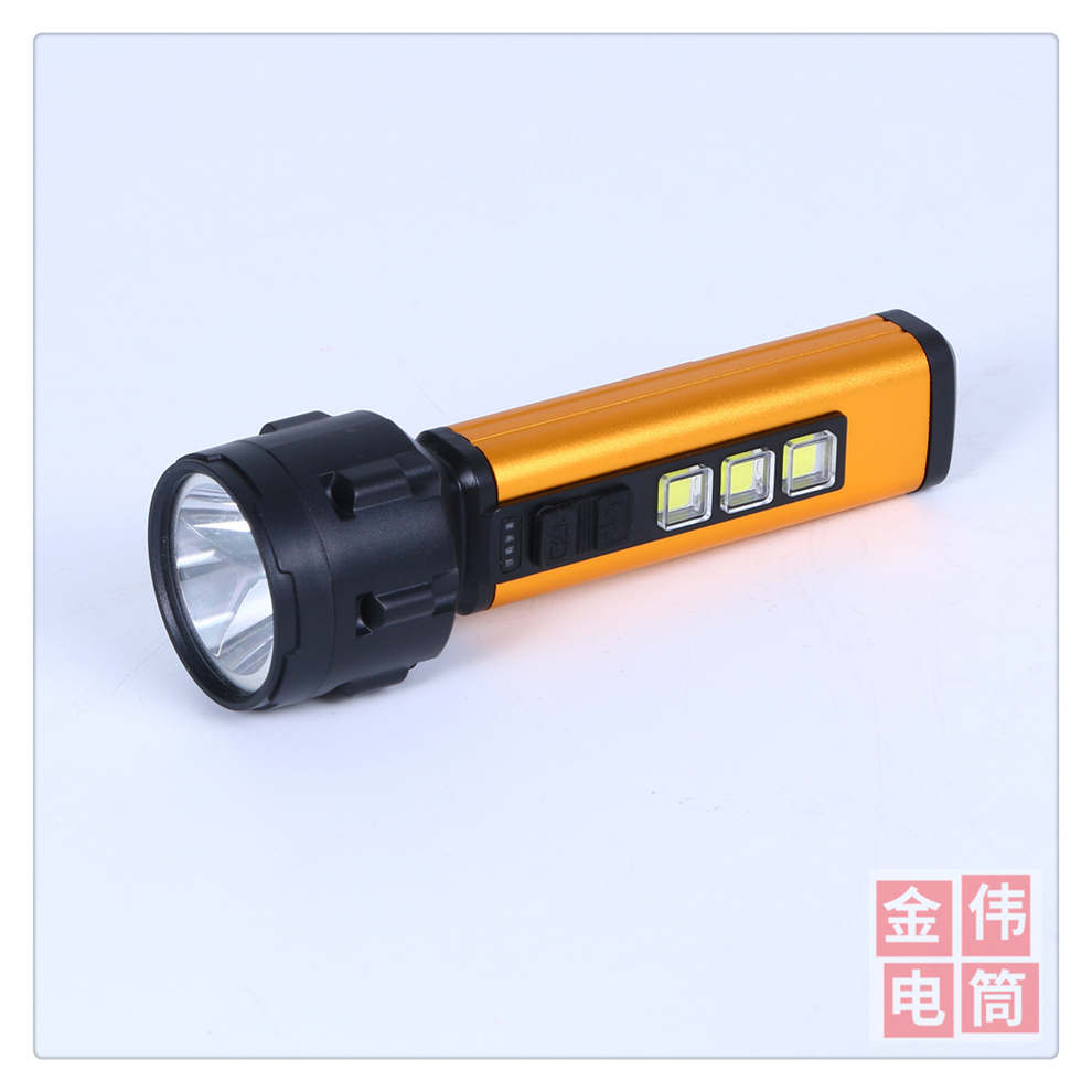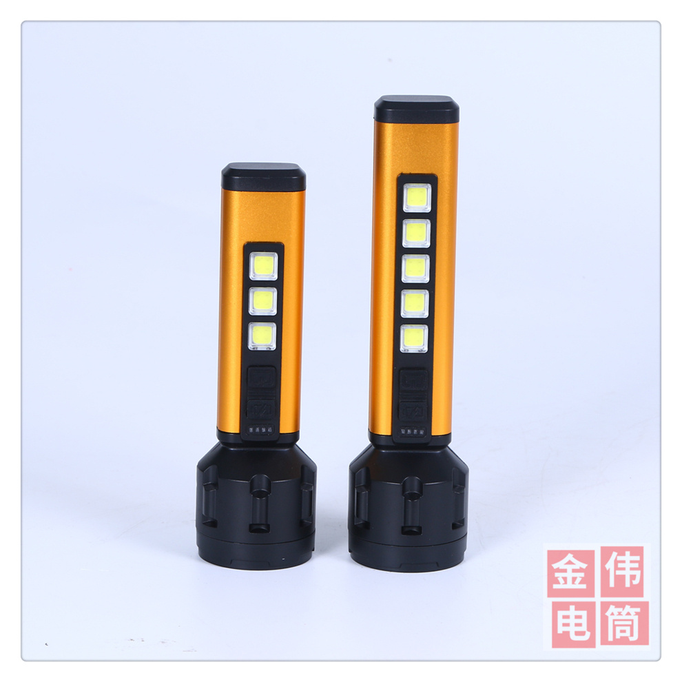 LED多功能户外便携USB充电COB手电筒 电量显示防水远射钓鱼手电筒