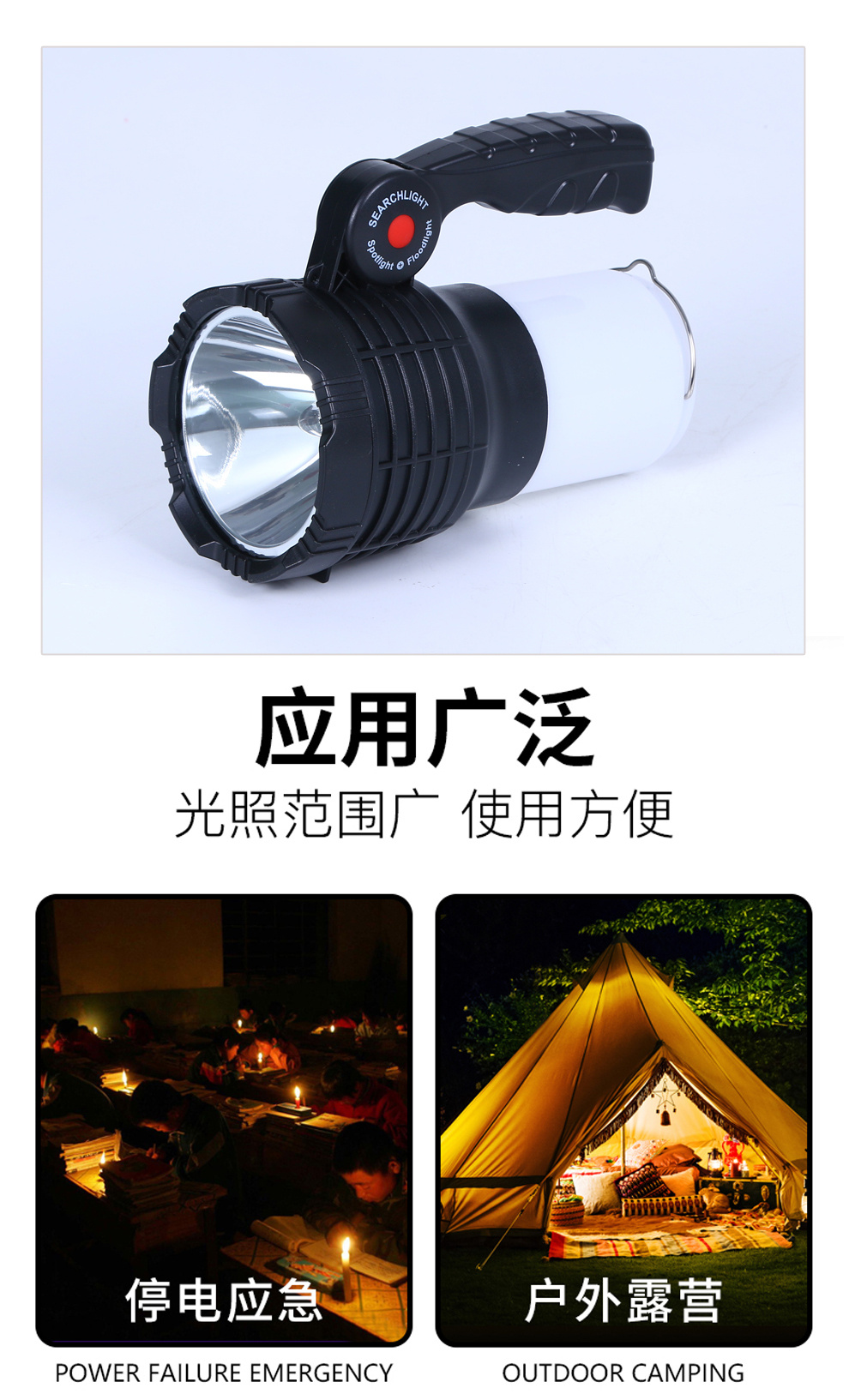 LED锂电手提探照灯 户外探险野钓露营多用途手提探照灯 现货批发